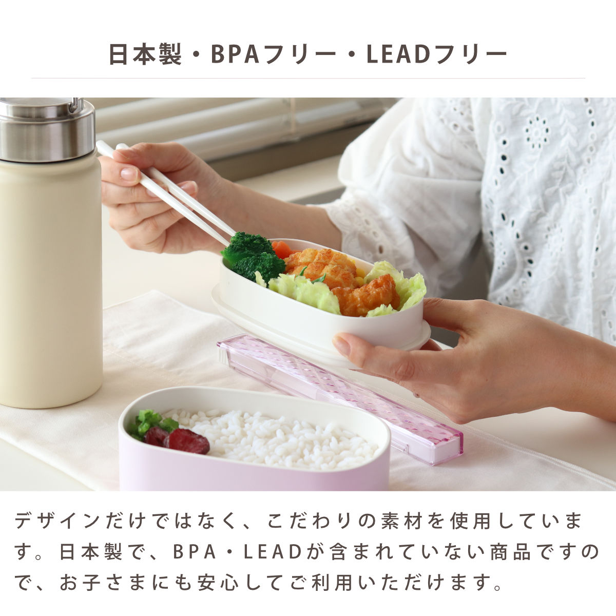 | 材質 | 箸箱 蓋:AS樹脂 箸箱 本体:ポリプロピレン 蓋のみ:ウレタン塗装 BPAフリー&LEADフリー 箸:メタクリル樹脂 |