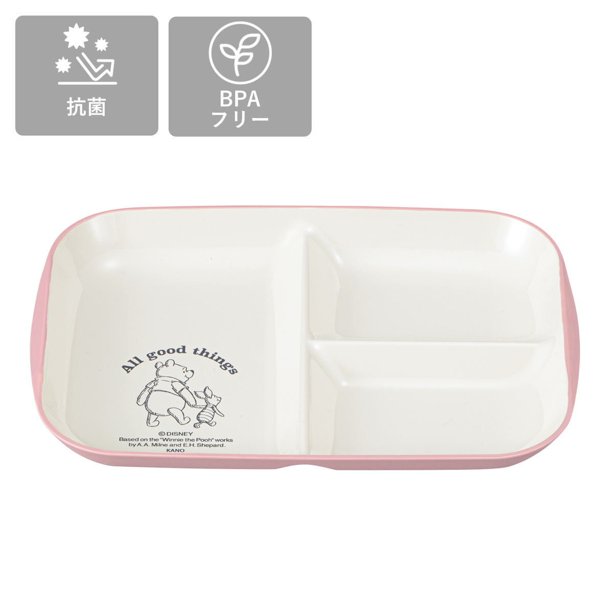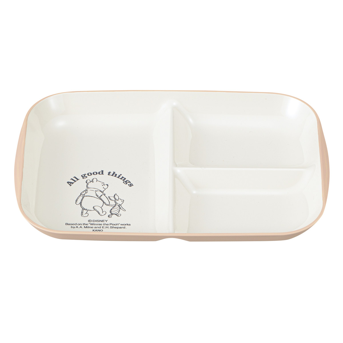 くまのプーさんとピグレットのデザインが可愛いランチプレートです。3つの仕切りは少し深さがあり、汁気のものも混ざらず盛り付けできます。温かいお料理、冷たい料理どちらにも最適です。万が一落ちてしまっても割れにくいので、お子様やご年配の方にも扱いやすい器です。