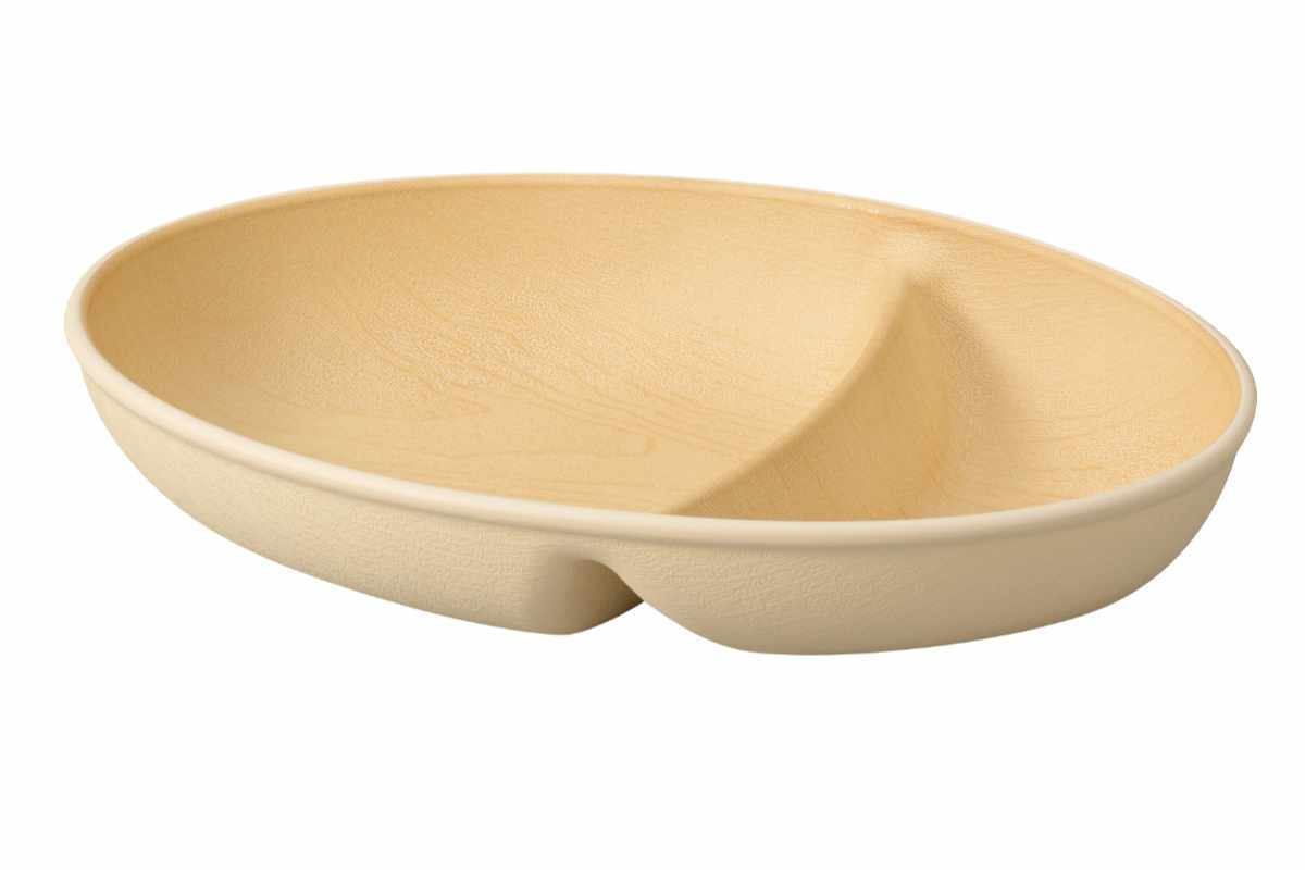 サラダ、パン、フルーツなどをのせた朝食やランチにぴったりな、2つの仕切りプレートです。程よい高さの仕切りでスプーンですくいやすく味が混ざることがありません。