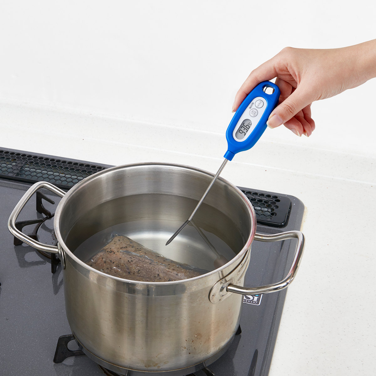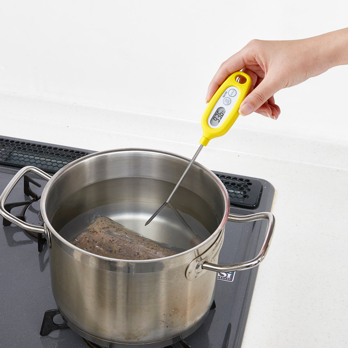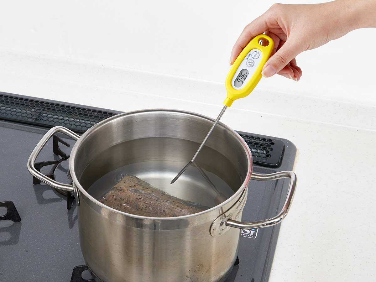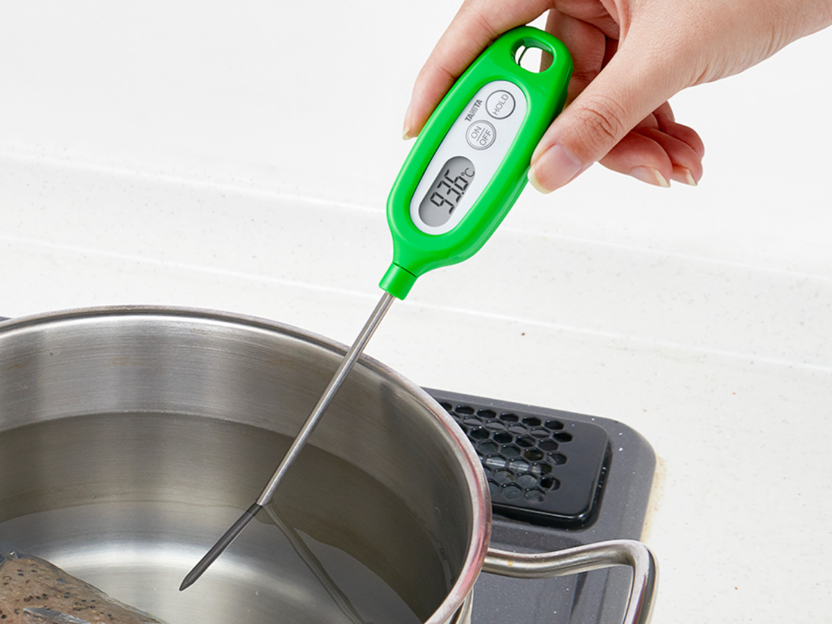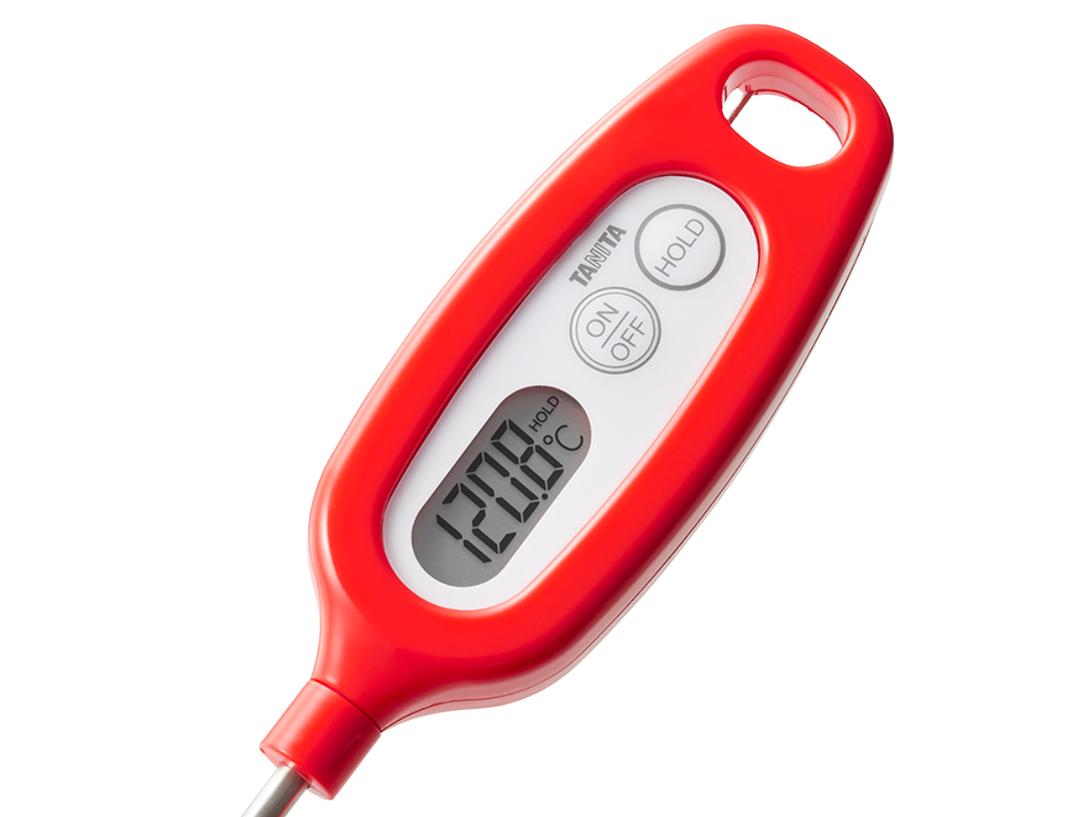 温度がひと目でわかるデジタル温度計は、加熱調理食材の中心温度、コーヒーの抽出温度などの確認に最適です。肉料理を理想的な焼き加減に仕上げたり、パンの発酵温度や焼き上がりを管理してふっくら美味しく焼き上げたりと、いつもの料理をよりおいしく仕上げてくれます。