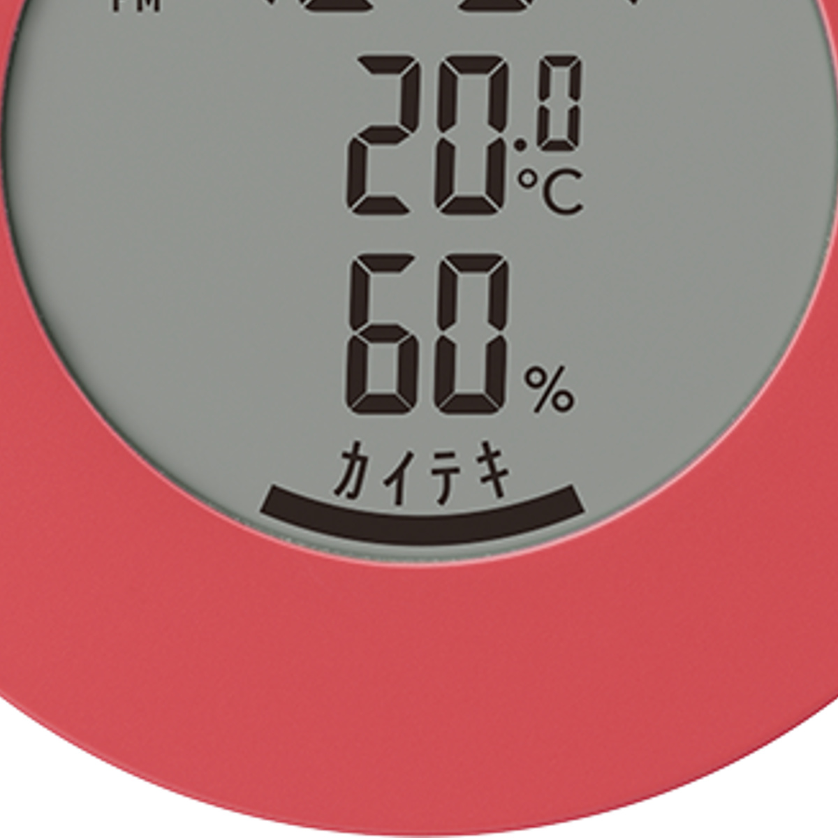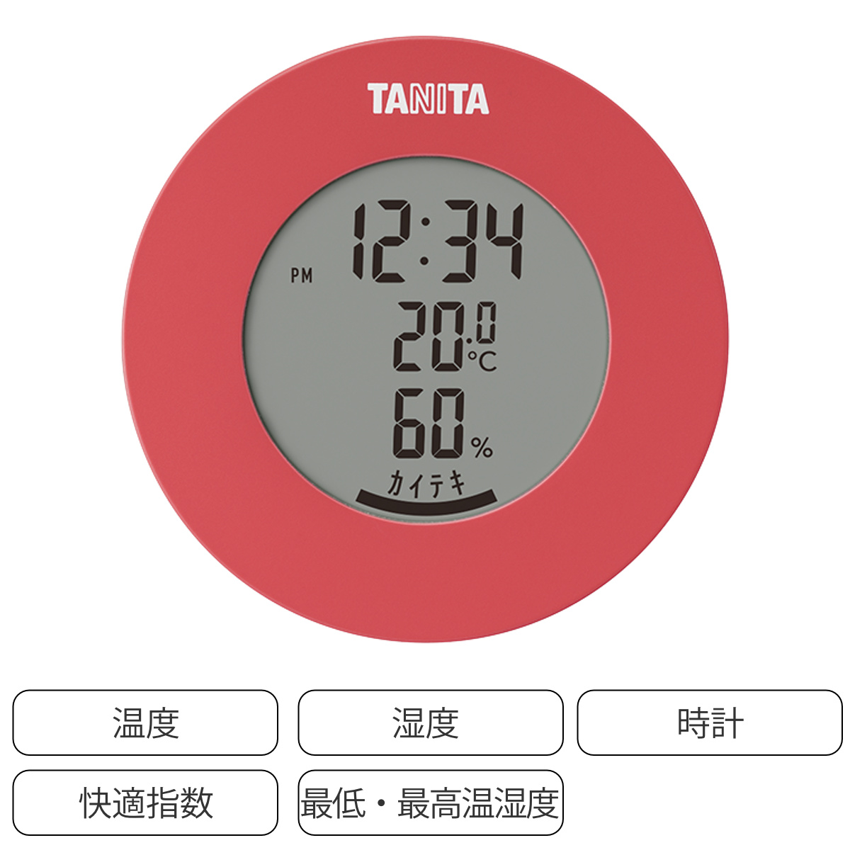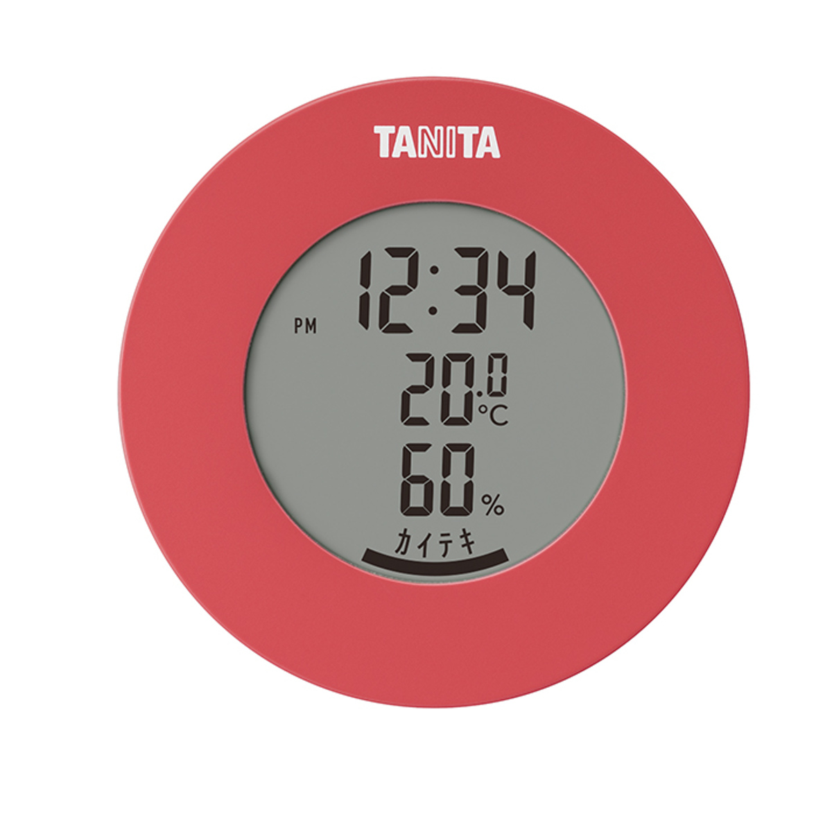 インテリアに馴染む丸型のデザインが特徴的なデジタル温湿度計です。お部屋の雰囲気に合わせて選べる柔らかな5つのカラー展開です。