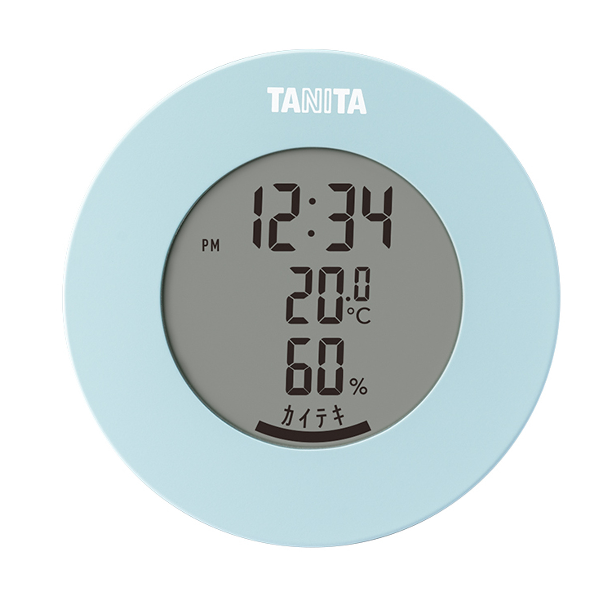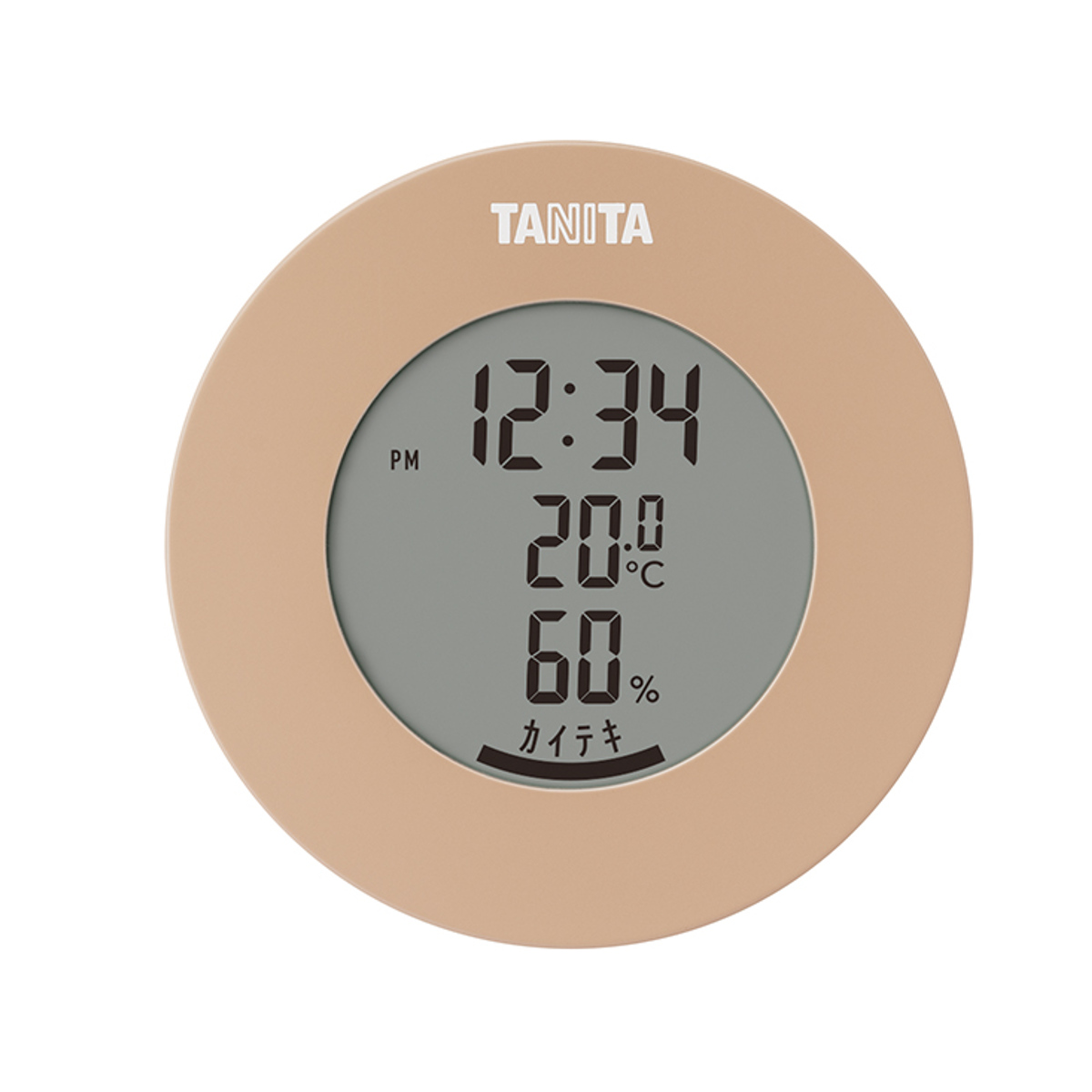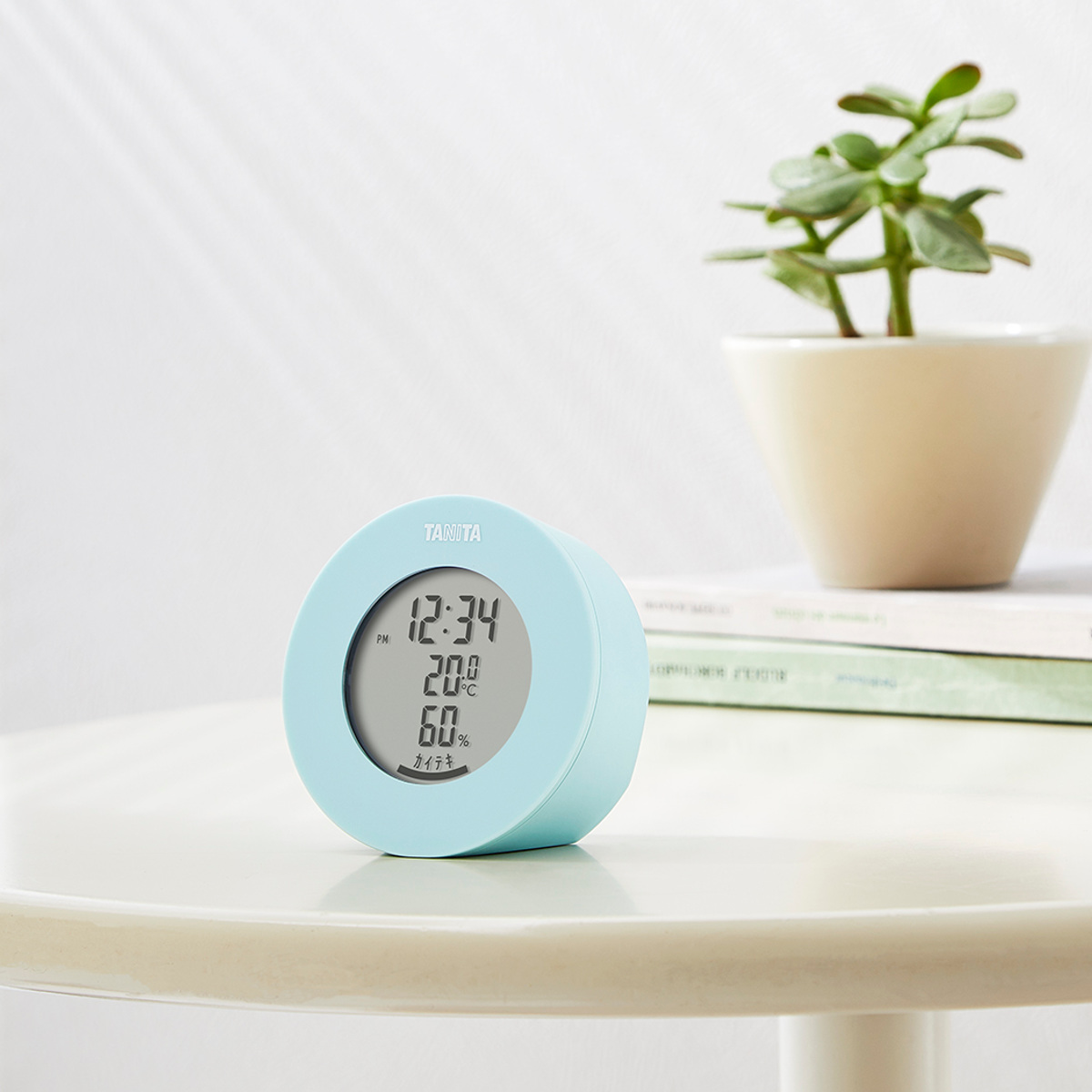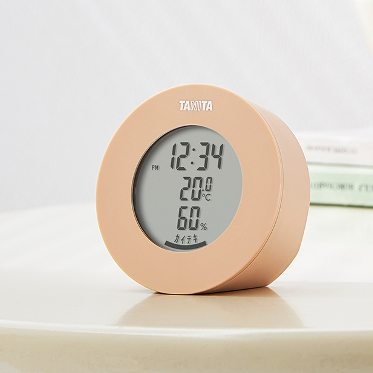 インテリアに馴染む丸型のデザインが特徴的なデジタル温湿度計です。お部屋の雰囲気に合わせて選べる柔らかな5つのカラー展開です。
