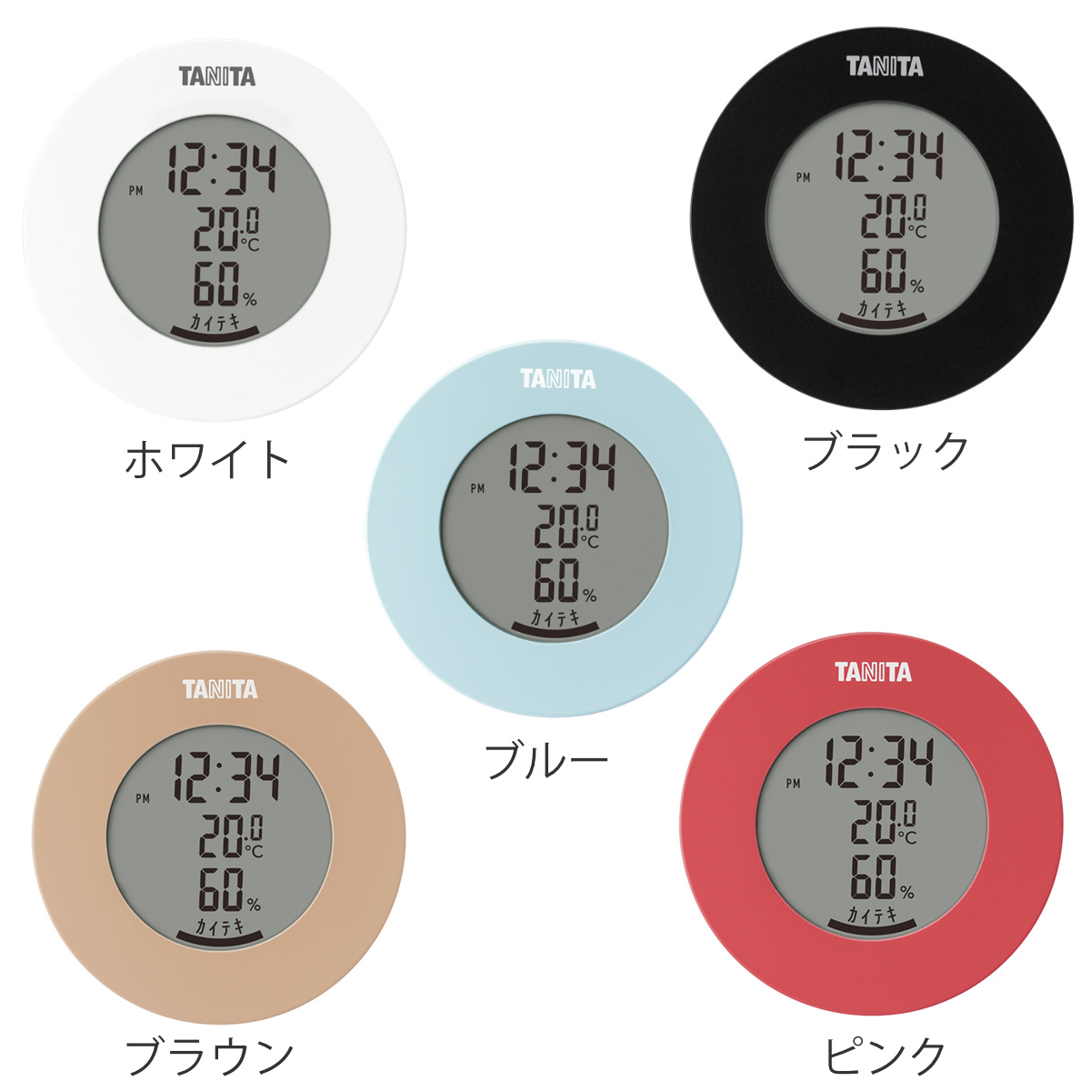 使う場所の雰囲気に合わせたカラーが選べる温湿度計