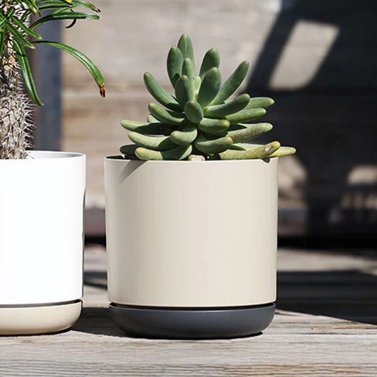 鉢底の貯水タンクにたまった水が、土の乾きに応じて自動で吸収される構造です。必要な分だけ水を吸うので根腐れしにくく、忙しい時や旅行中も安心して植物を育てられます。適応サイズ:約6号