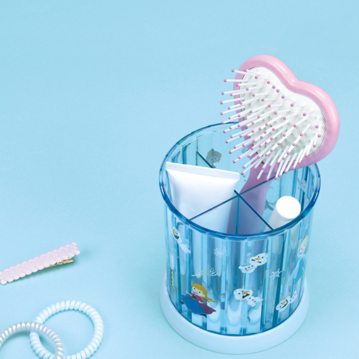 360度回転する小物スタンドです。くるくる回ることで、必要なアイテムをすぐに取り出せるので、デスク周りやキッチンで活躍します。