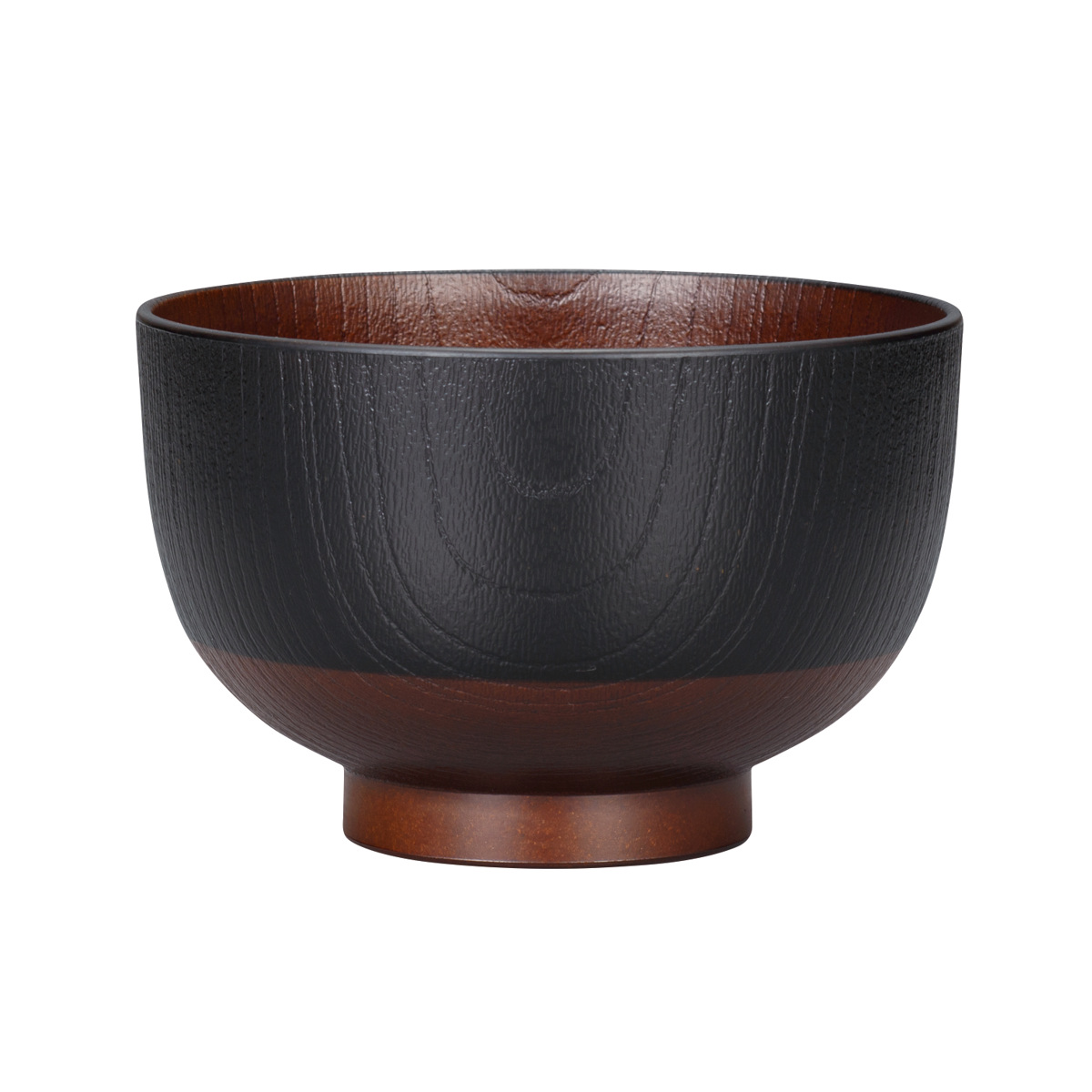 器の外側と内側には木目調のデザインが施されています。食卓に馴染みやすく、温かい雰囲気に包まれるような、ぬくもりを感じられるデザインです。
