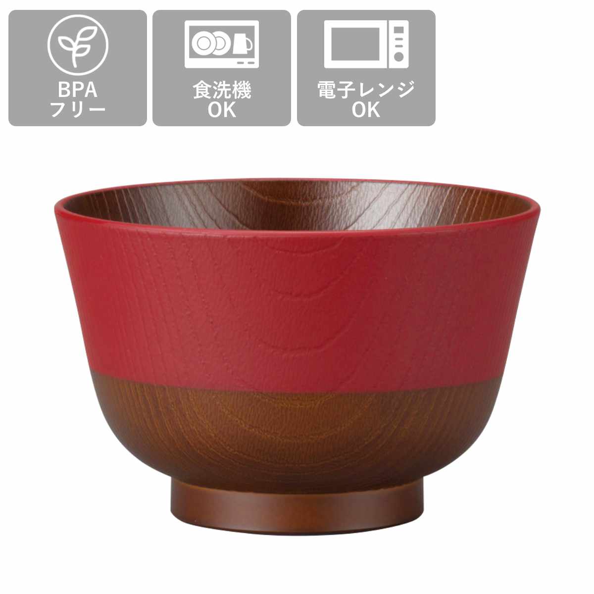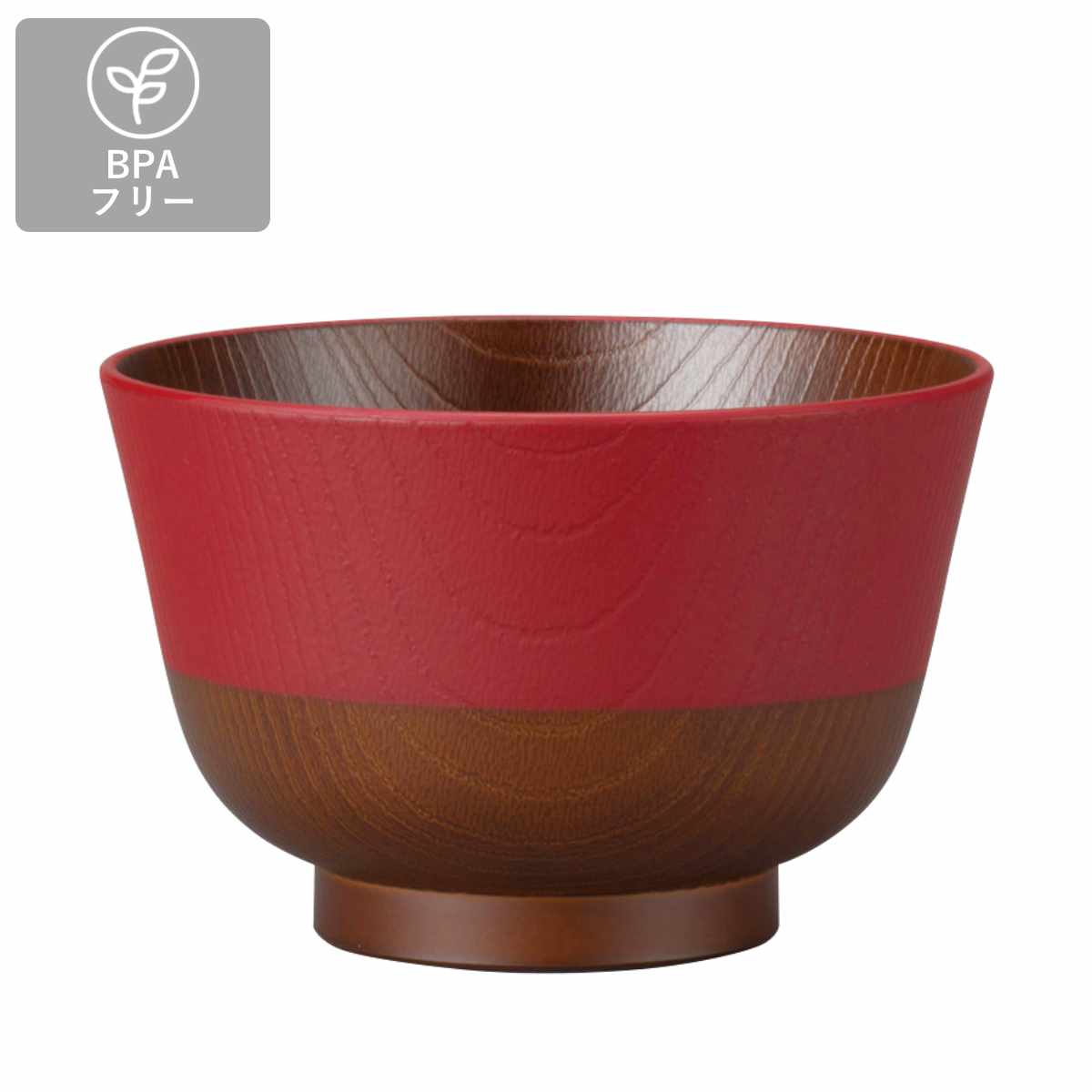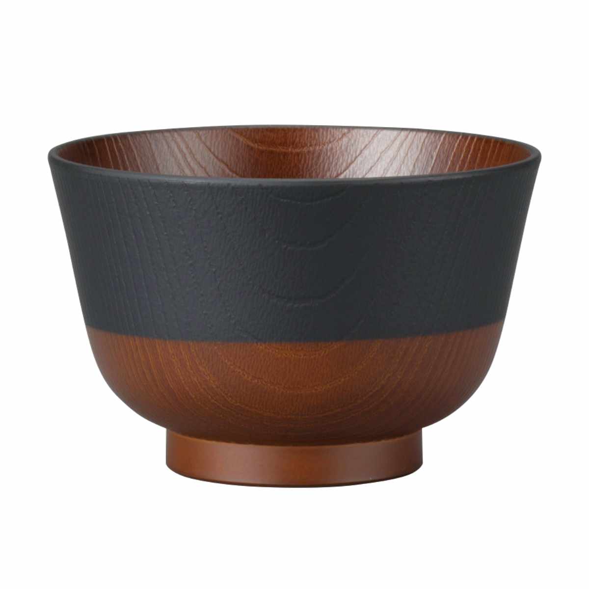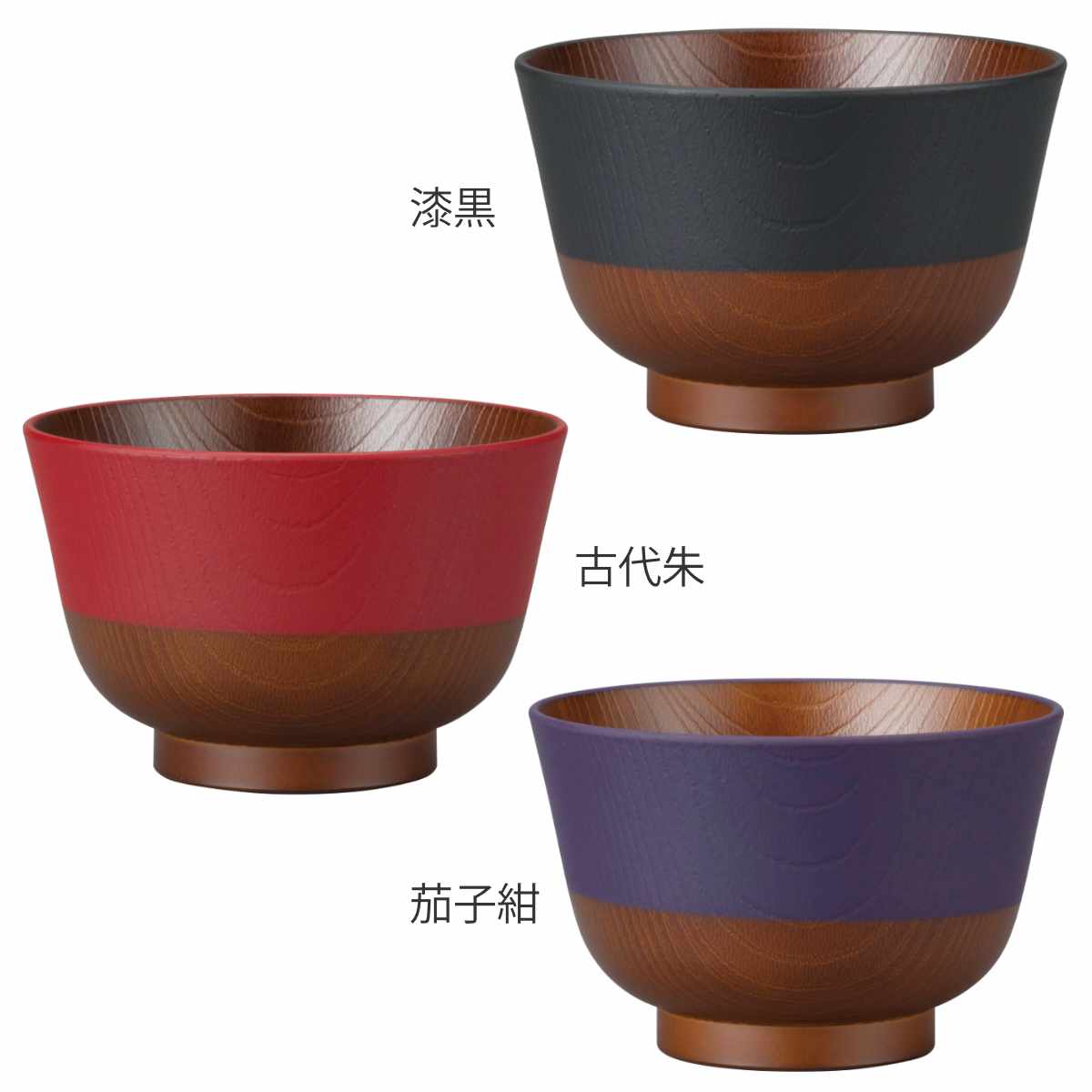 日本の伝統色を使った木目調の汁椀です。和の色合いでモダンなツートンカラーは和食にも洋食にも合います。具沢山のお味噌汁やうどん等の麺類にも最適です。高台で持ち易く食卓に置く際も安定します。