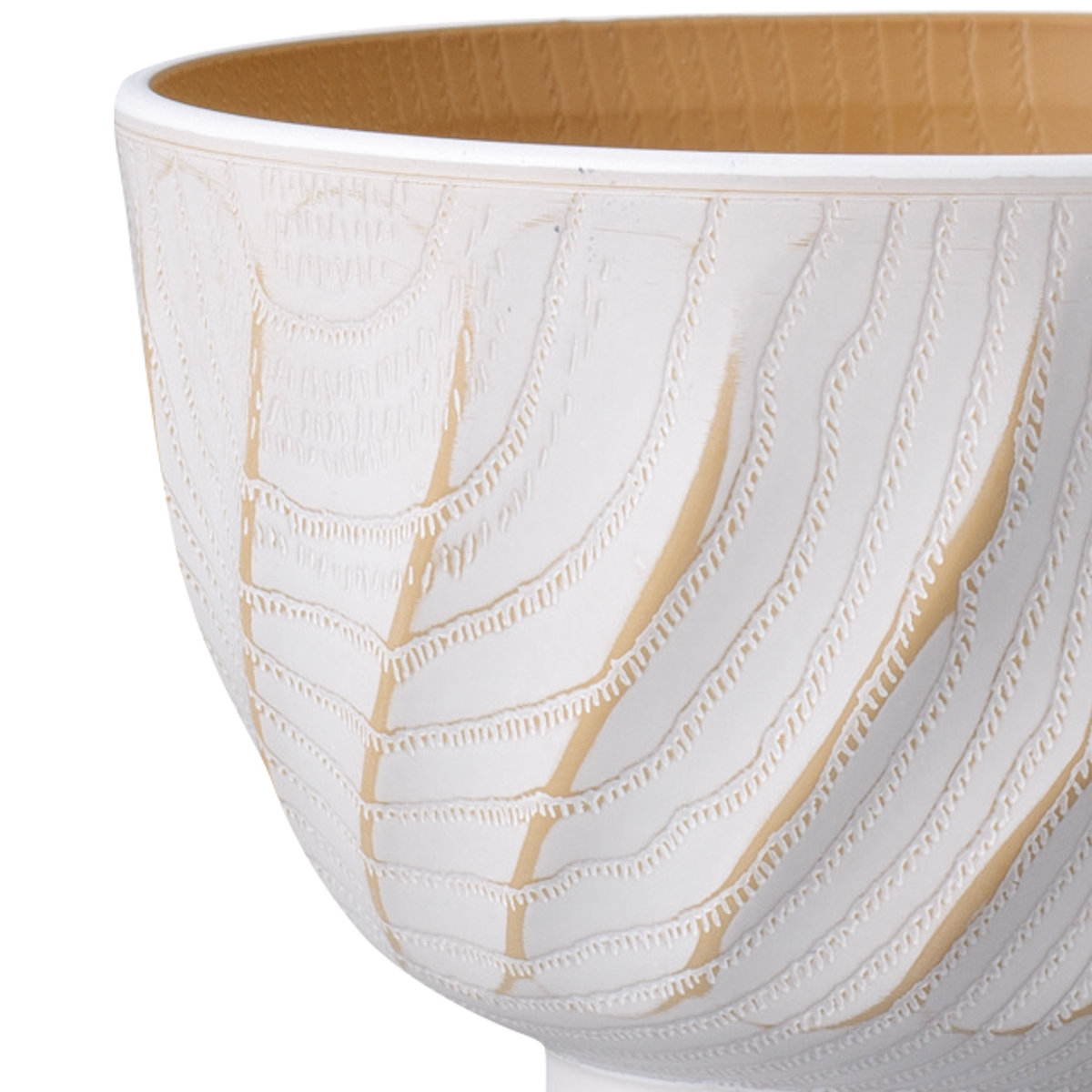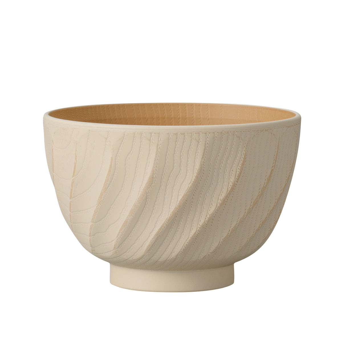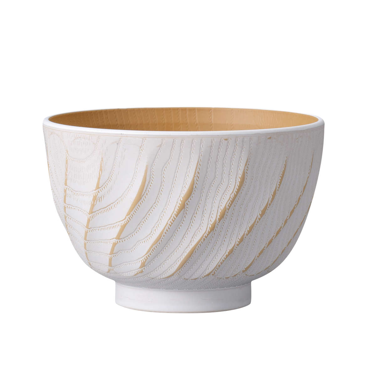 表面は手作業で施された繊細な彫刻模様が特徴的で、手に取ったときに滑りにくく持ちやすいです。内側には木目調のデザインが施されており、食卓に馴染みやすく、温かみのある雰囲気を演出します。