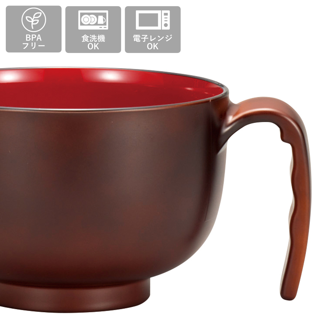 ハンドル付きで手を差し込みやすく、しっかり握りやすい汁椀です。小さなお子さまやご年配の方にも使いやすく、重宝します。