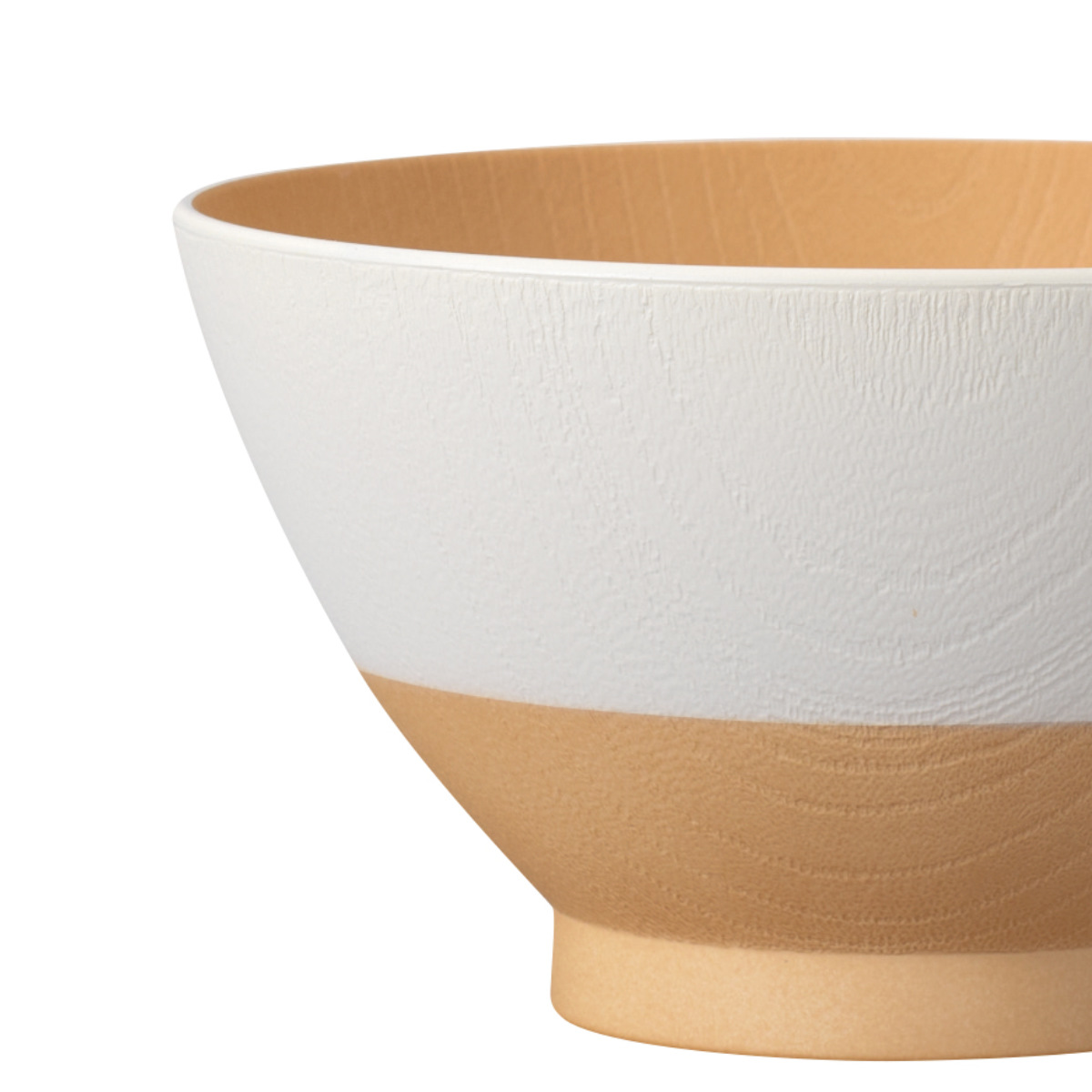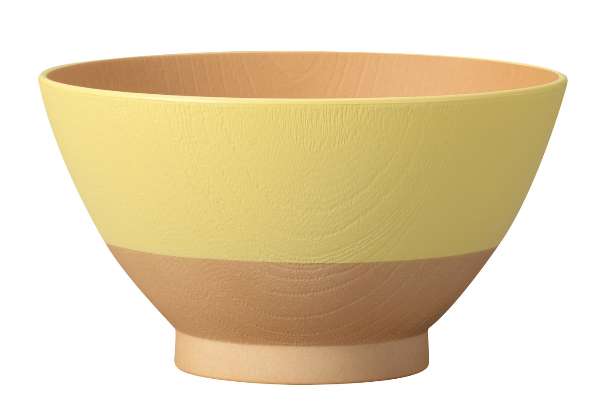 器の外側と内側には木目調のデザインが施されています。食卓に馴染みやすく、温かい雰囲気に包まれるような、ぬくもりを感じられるデザインです。