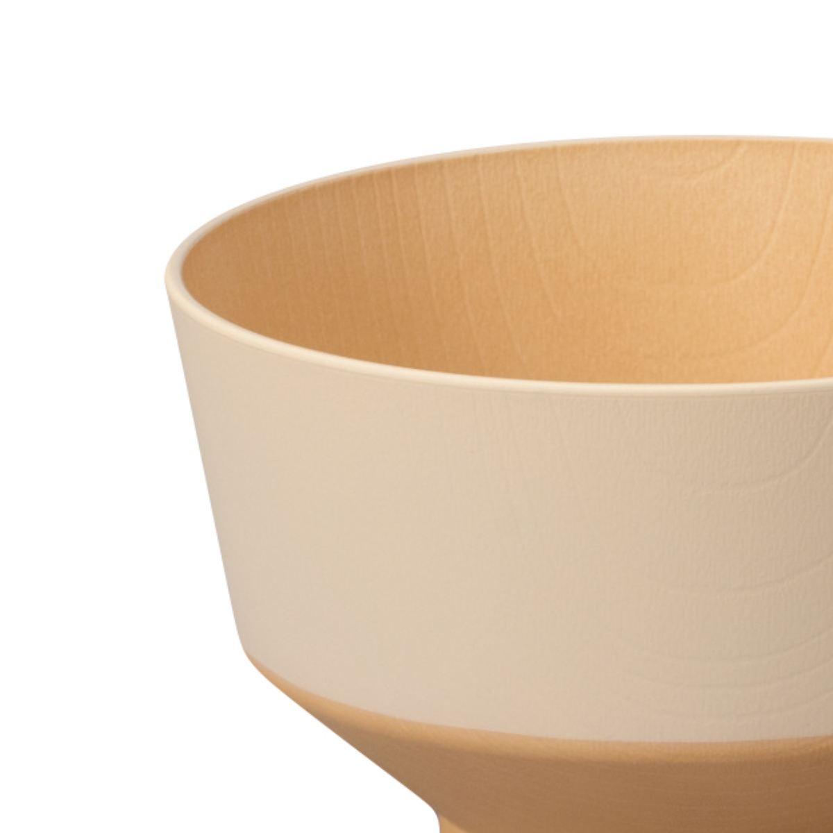 器の外側と内側には木目調のデザインが施されています。食卓に馴染みやすく、温かい雰囲気に包まれるような、ぬくもりを感じられるデザインです。