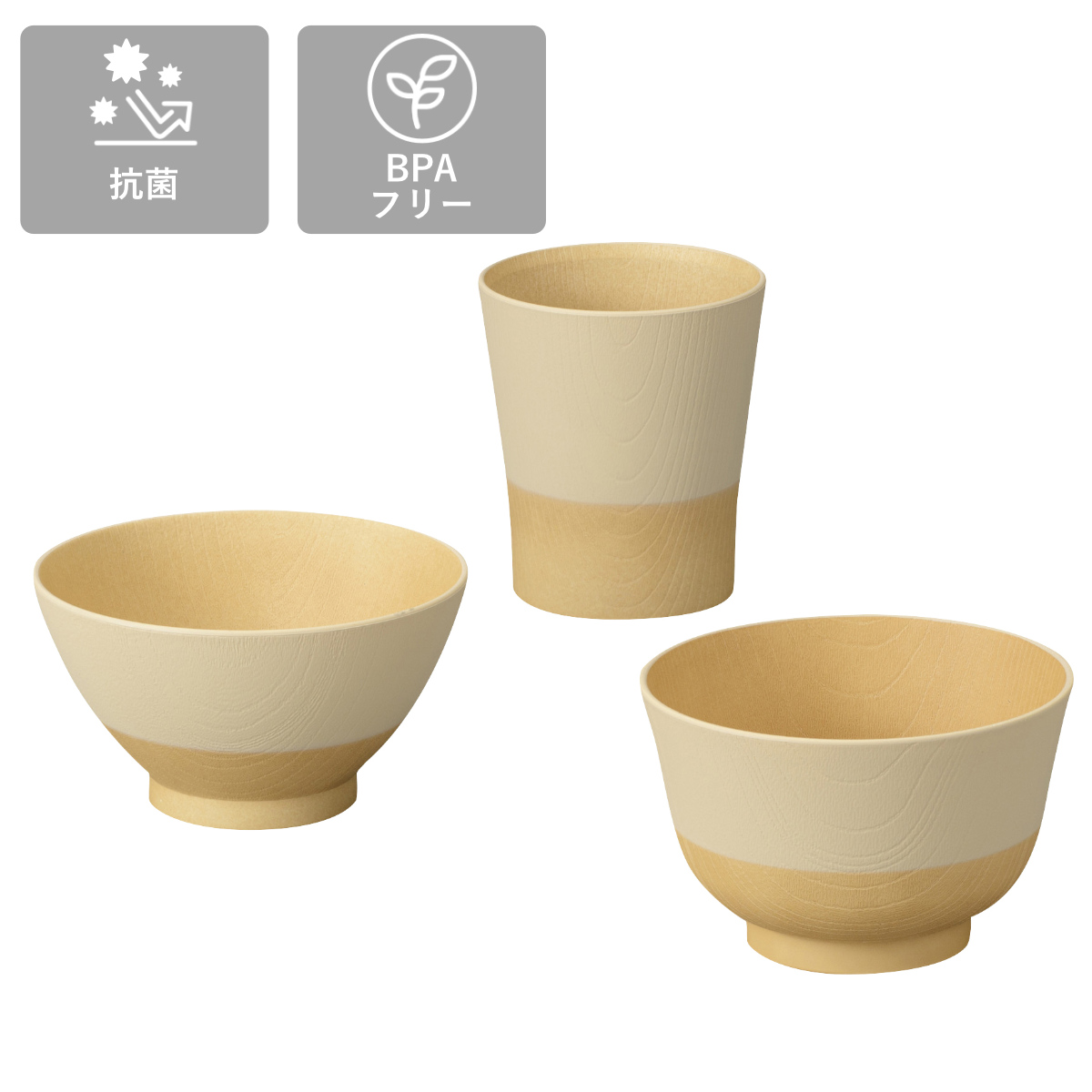 軽くて割れにくく、扱いやすい 飯椀と汁椀とカップのセット