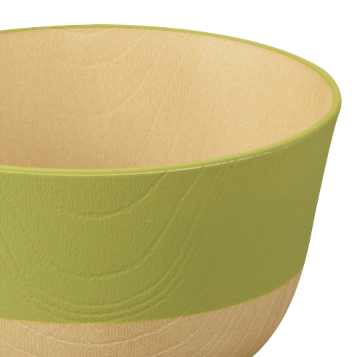 器の外側と内側には木目調のデザインが施されています。食卓に馴染みやすく、温かい雰囲気に包まれるような、ぬくもりを感じられるデザインです。