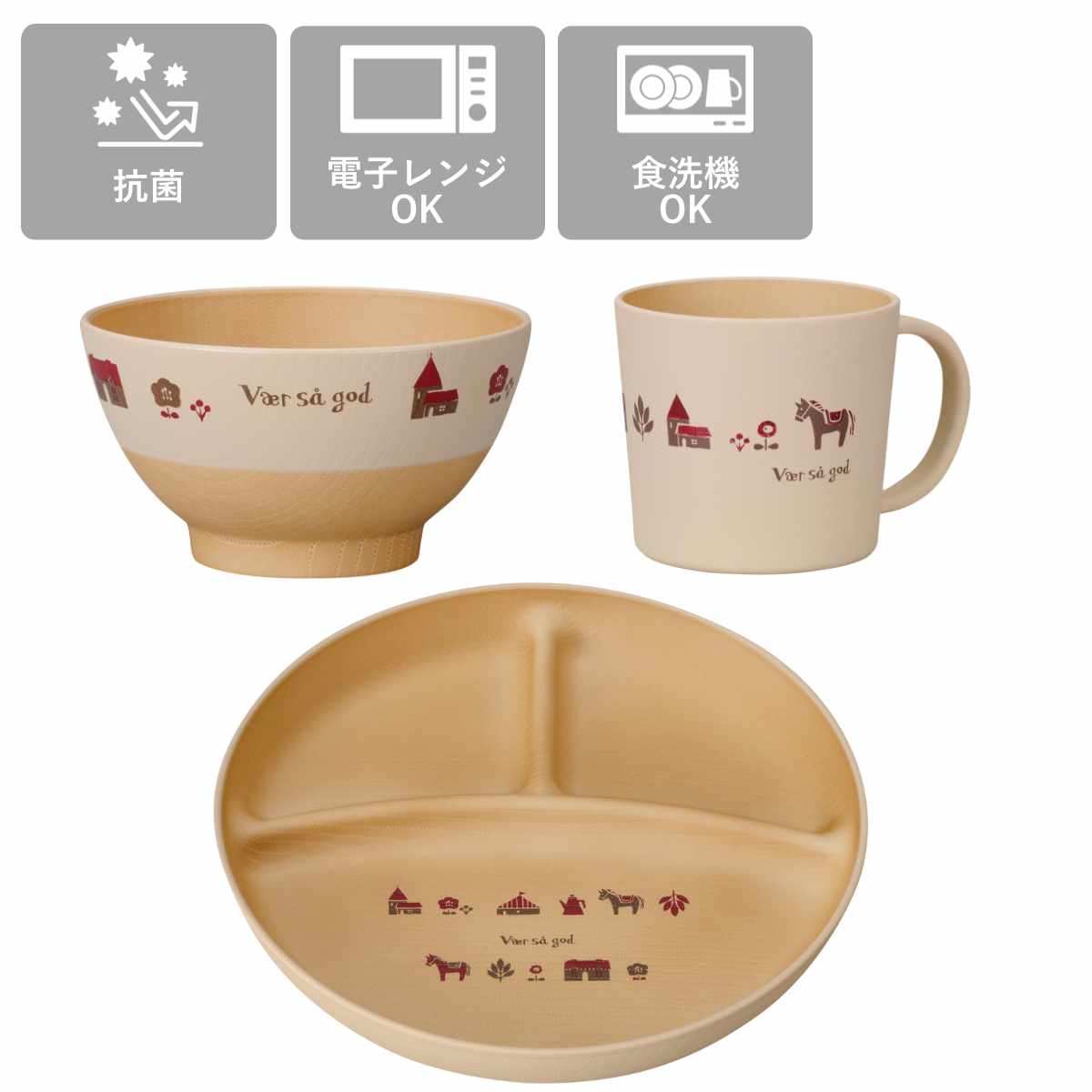 お子様にぴったりな軽くて丈夫な抗菌食器セット