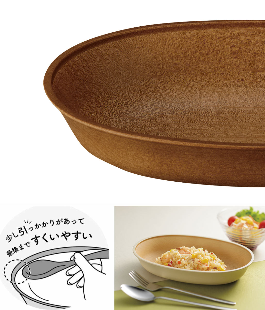 ●食事を手助けしてくれるすくえる形状の小判ボウルです。