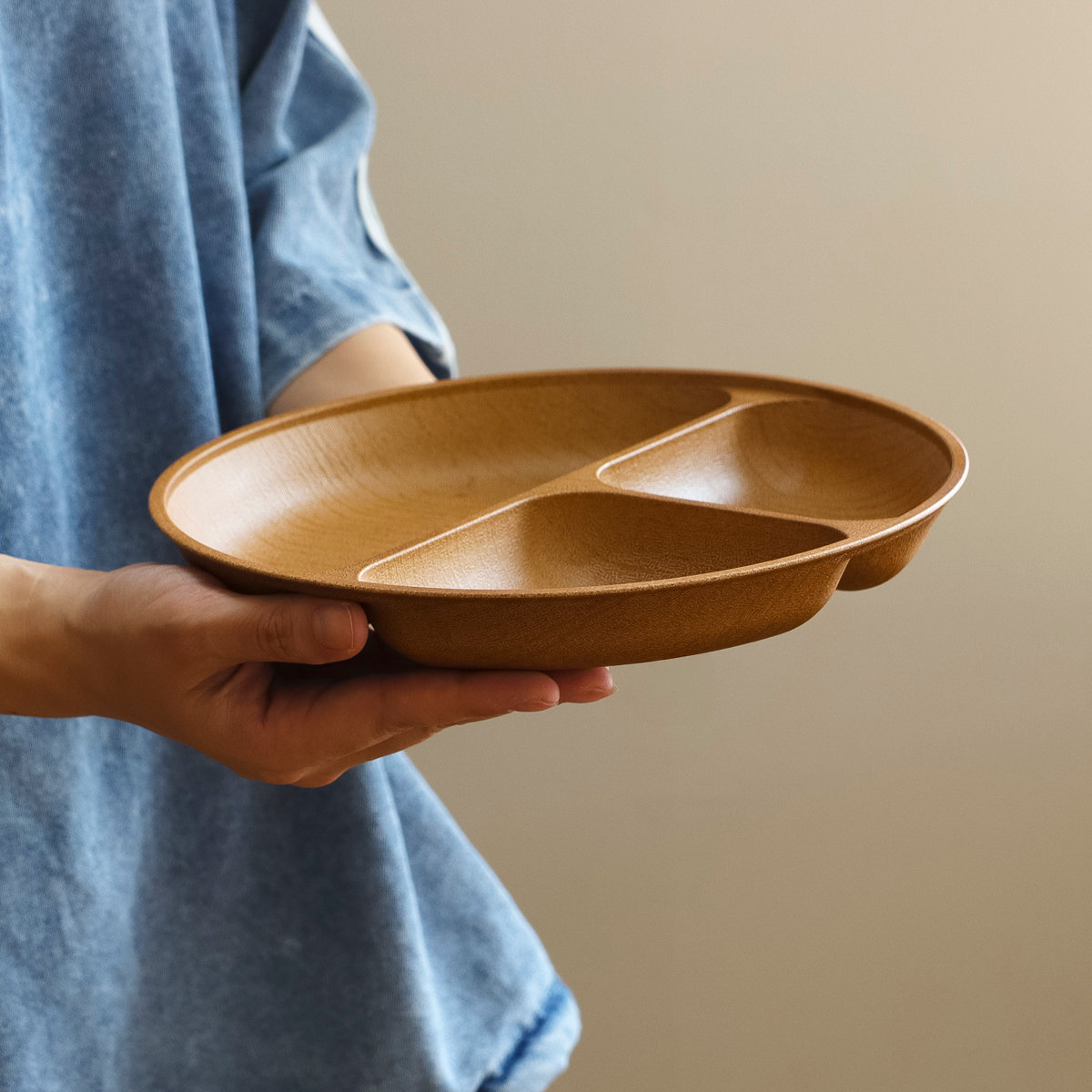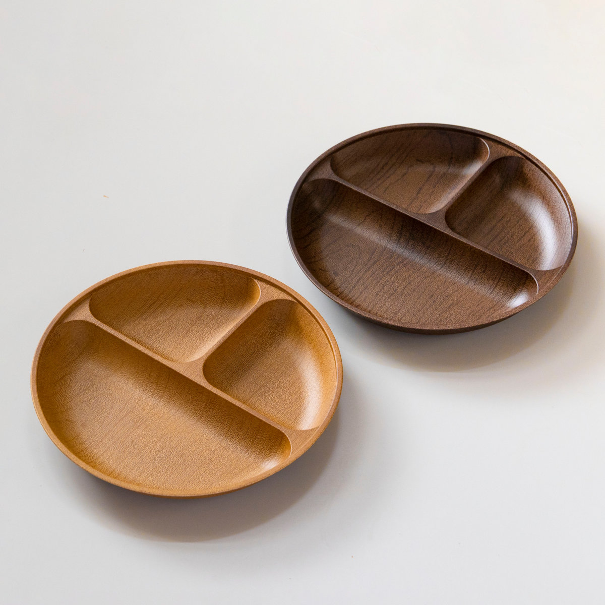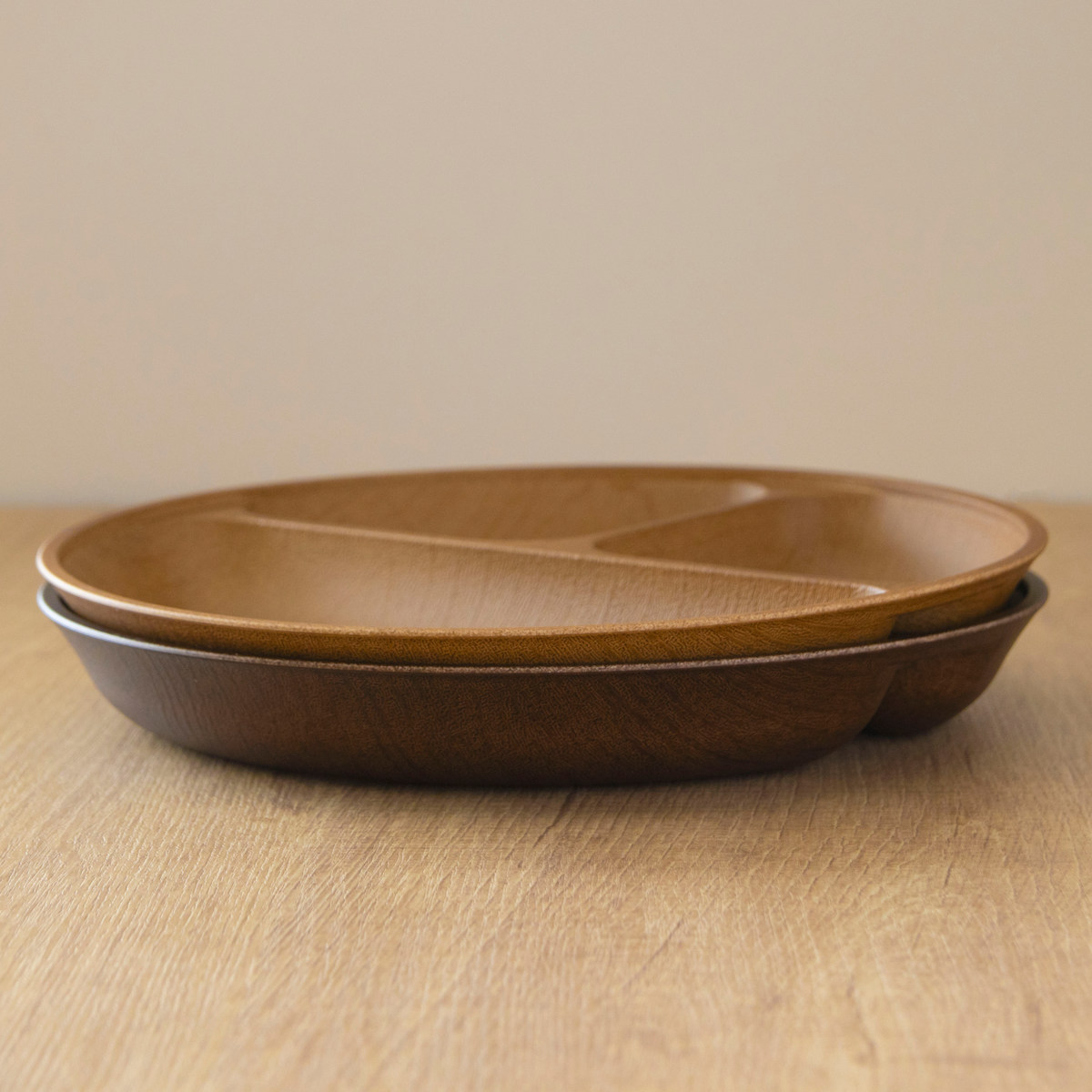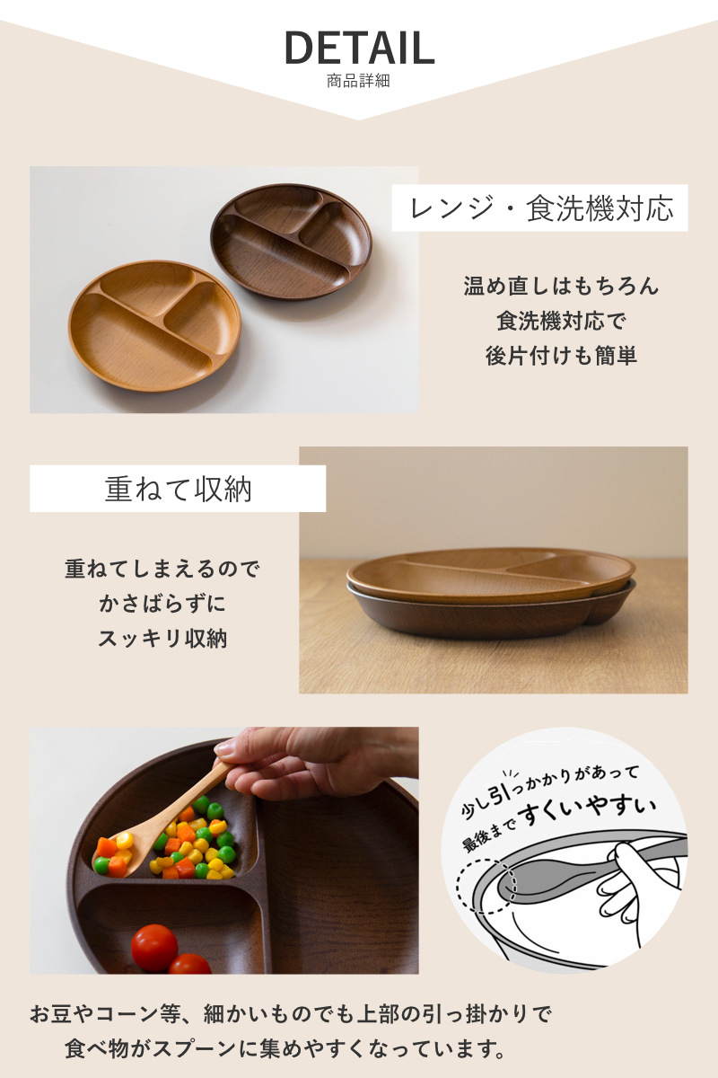 気軽にカフェのようなランチが楽しめる、木製風のランチプレートです。朝食やランチにはワンプレートごはん、夕食にはおかずやおつまみを取り分ける仕切り皿に。食卓の様々なシーンで使えるので、毎日使う食器の定番アイテムとして活躍してくれます。
