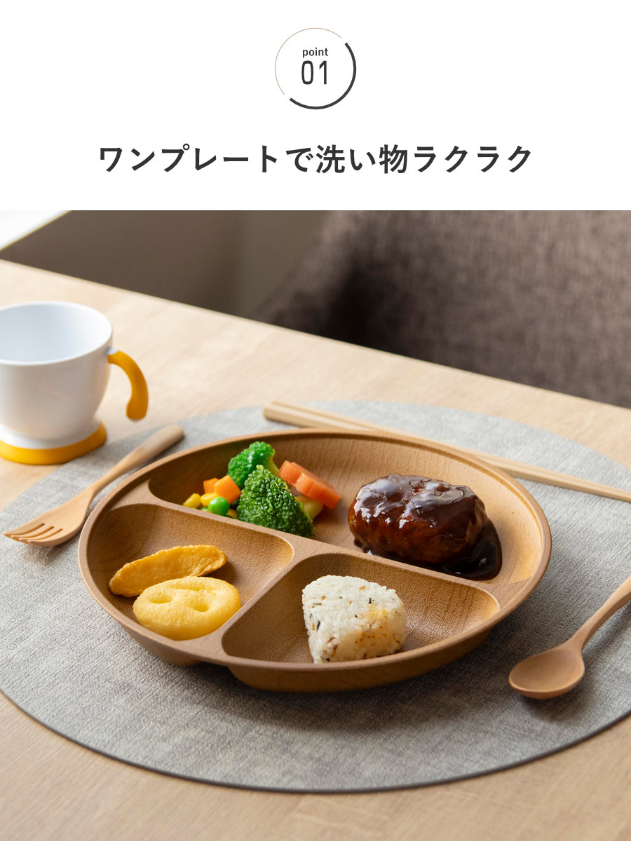 主食からおかずまでひとつのプレートに盛り付けできるので、洗い物はこれ一つ。毎日の家事をちょっと楽にしてくれます。