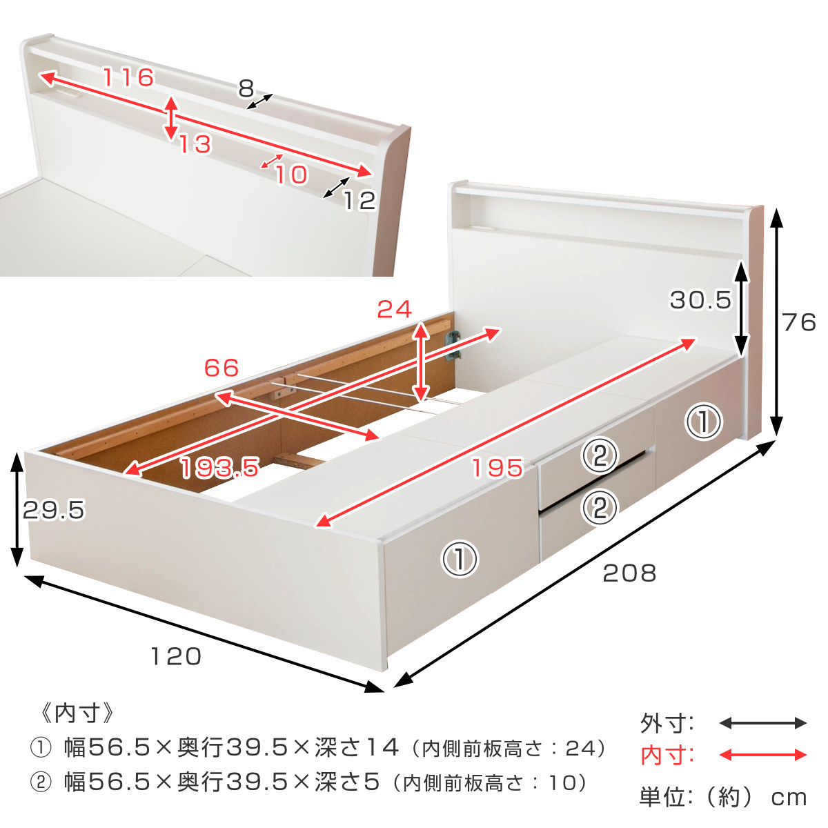 | 注意事項 | ※マットレスは付属しておりません ※必ず17cm以上のスプリングマットレスを乗せてご使用ください ※背面は処理されておりませんので壁付けでご使用ください ※商品ページ内には別の商品を含む画像を使用しています |