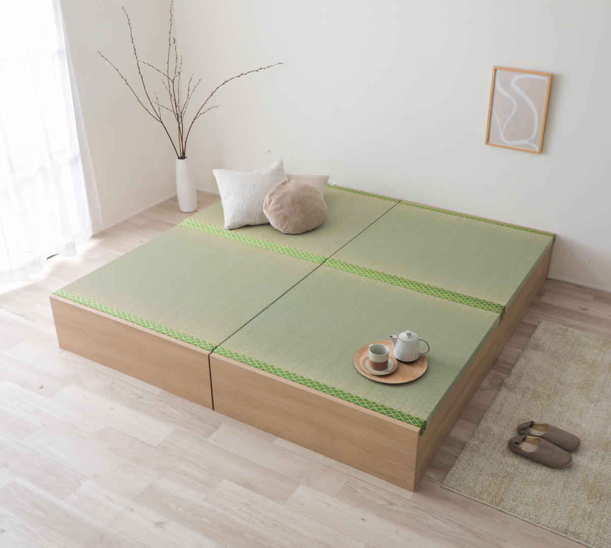 寝る・収納・くつろぐが叶う、連結できる小上がり風 畳ベッド