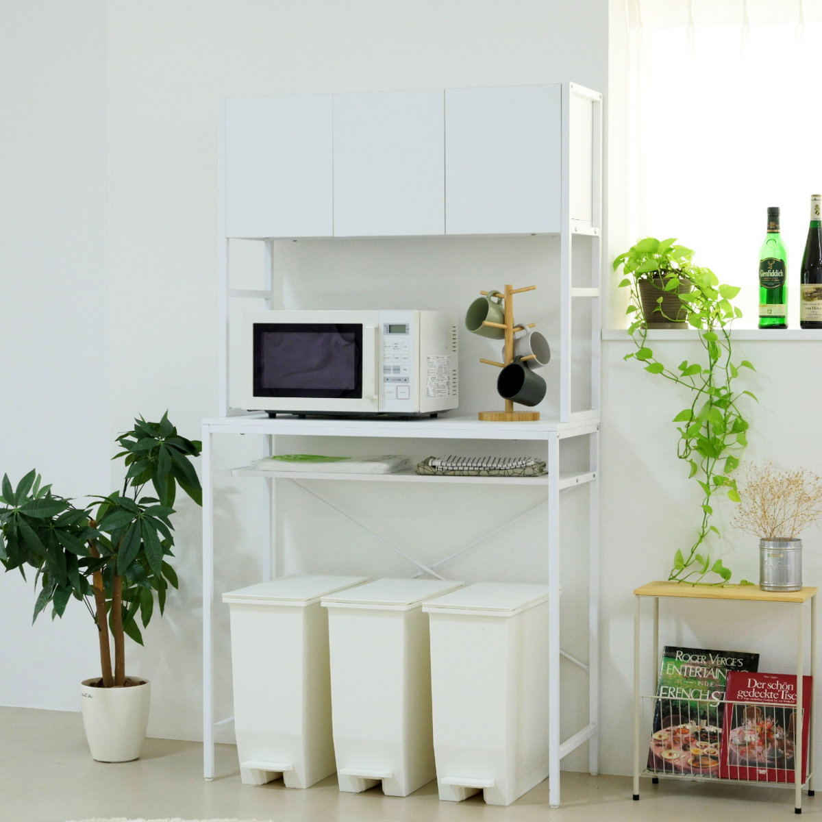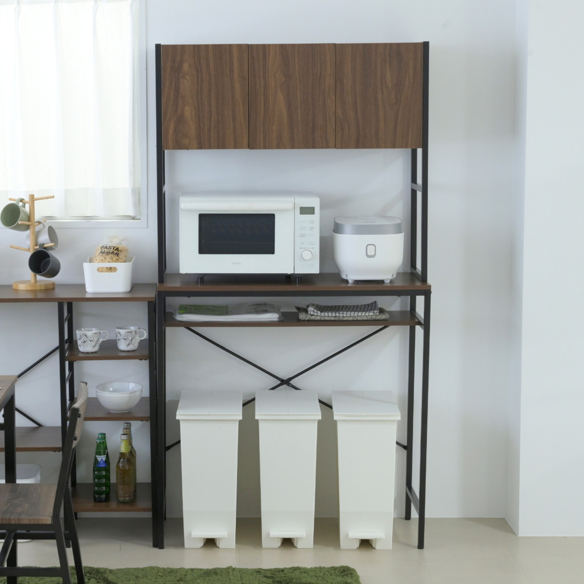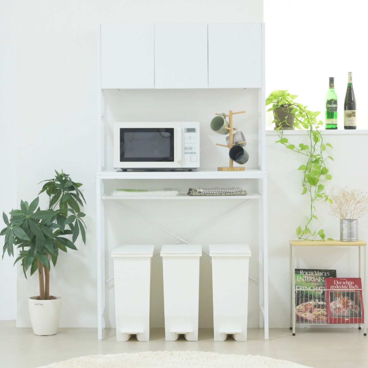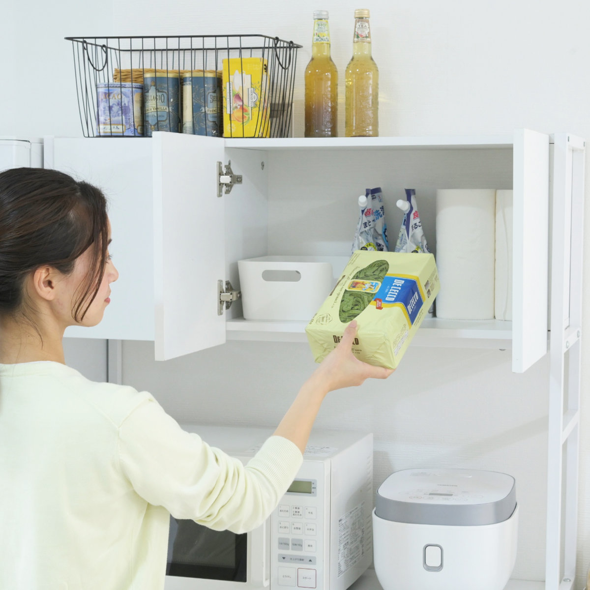 ゴミ箱の上に設置するだけで、デッドスペースが収納スペースに早変わりするキッチンラックです。キッチン家電や食品などがすっきり収まり、動線も短縮できるので毎日の家事がよりスムーズになります。