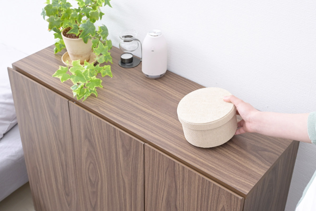 生活感の出るルーターや電子機器を隠して収納できる配線コード穴が付いています。