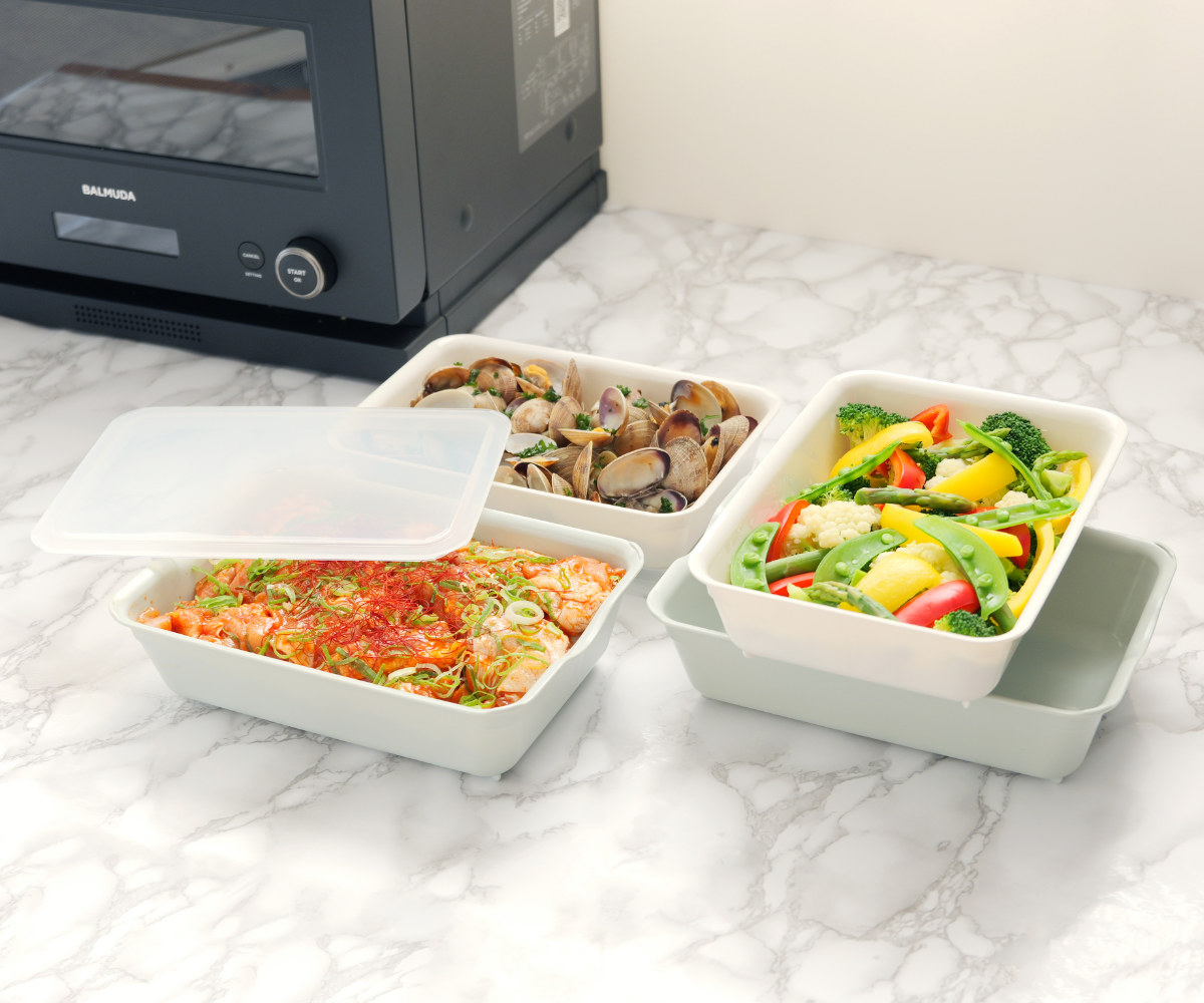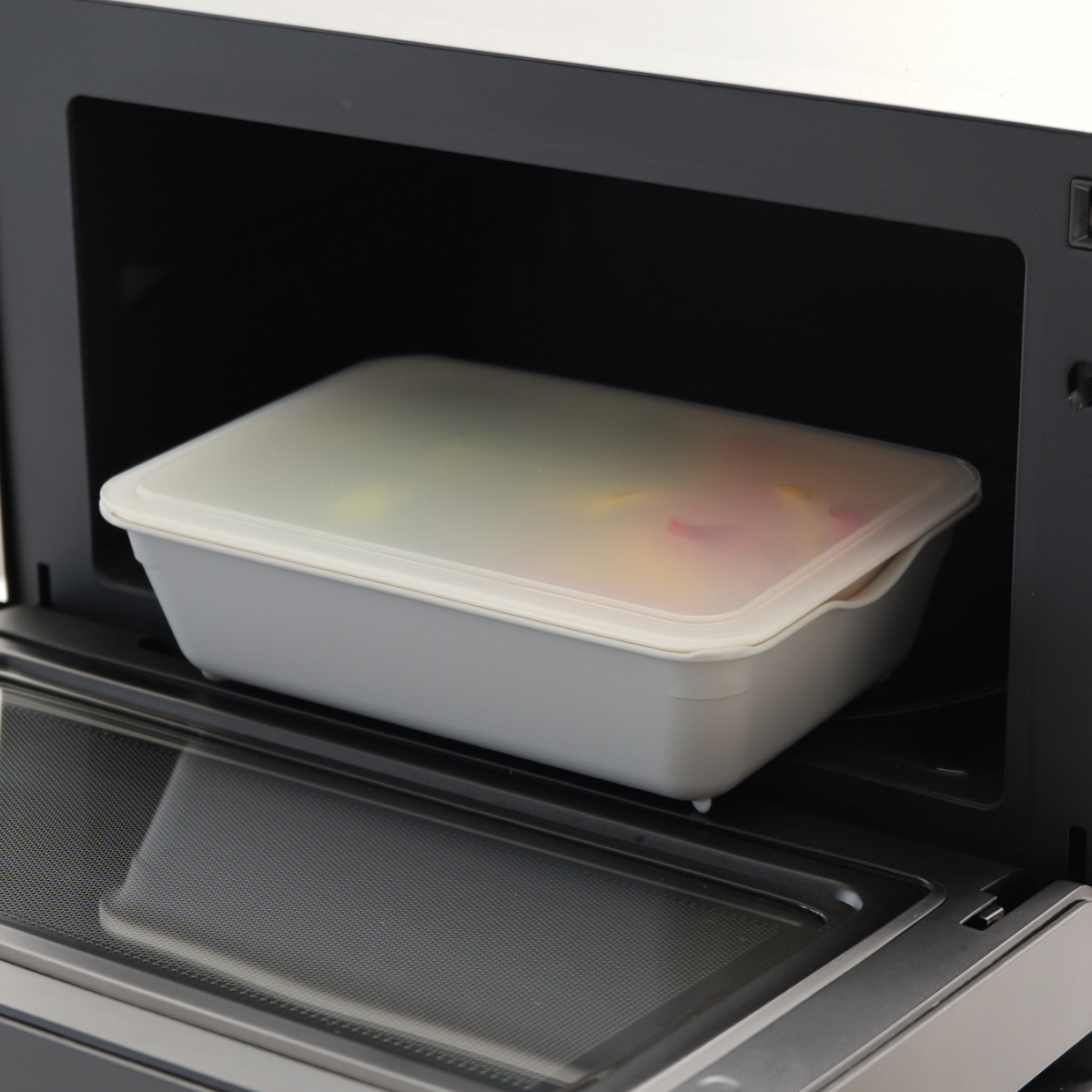 下ごしらえした食材をそのままレンジにかけられるのでとっても便利。フタも電子レンジ対応なので、ラップを使わずエコで経済的です。