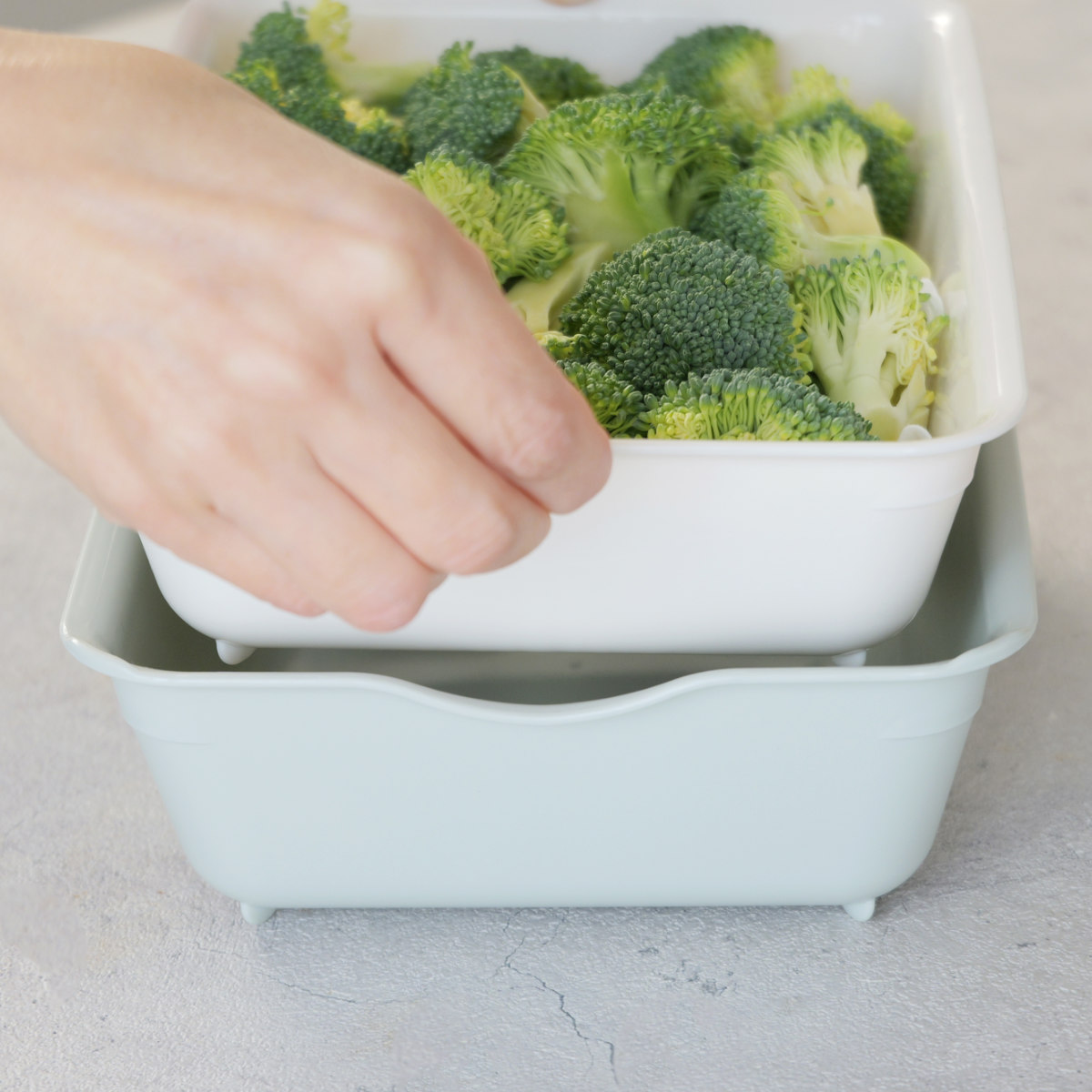 洗う・水切り・加熱・保存がこれ1つででき、重ねて使えるので調理スペースがスッキリ。日々の調理を効率化できる、使い勝手の良いアイテムです。