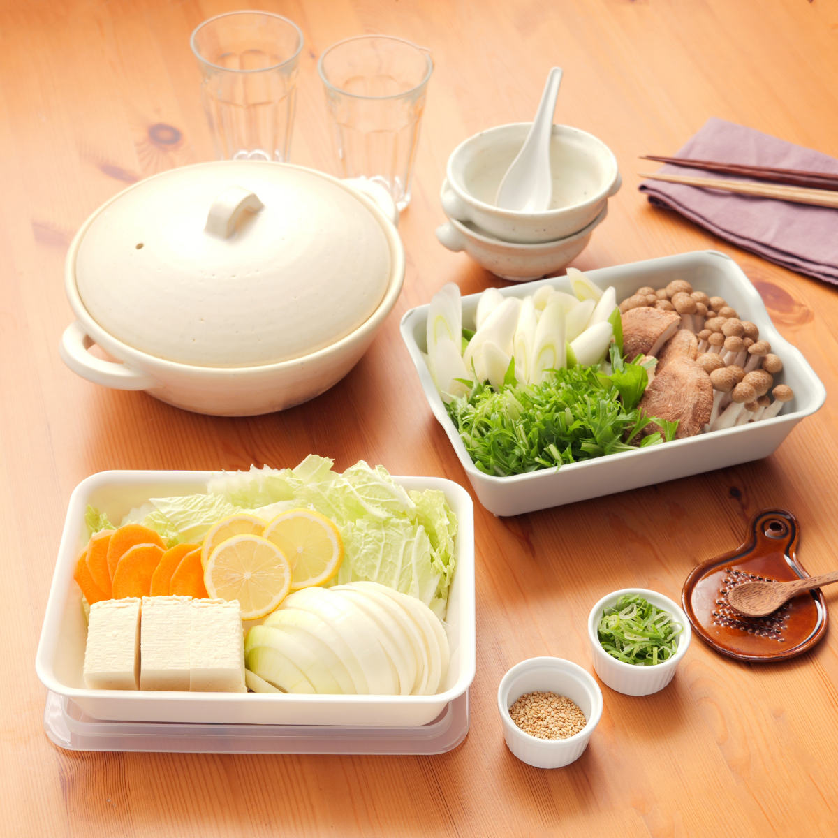 お鍋の食材の一時置きにも便利です。フタを下に敷けば水受けになります。