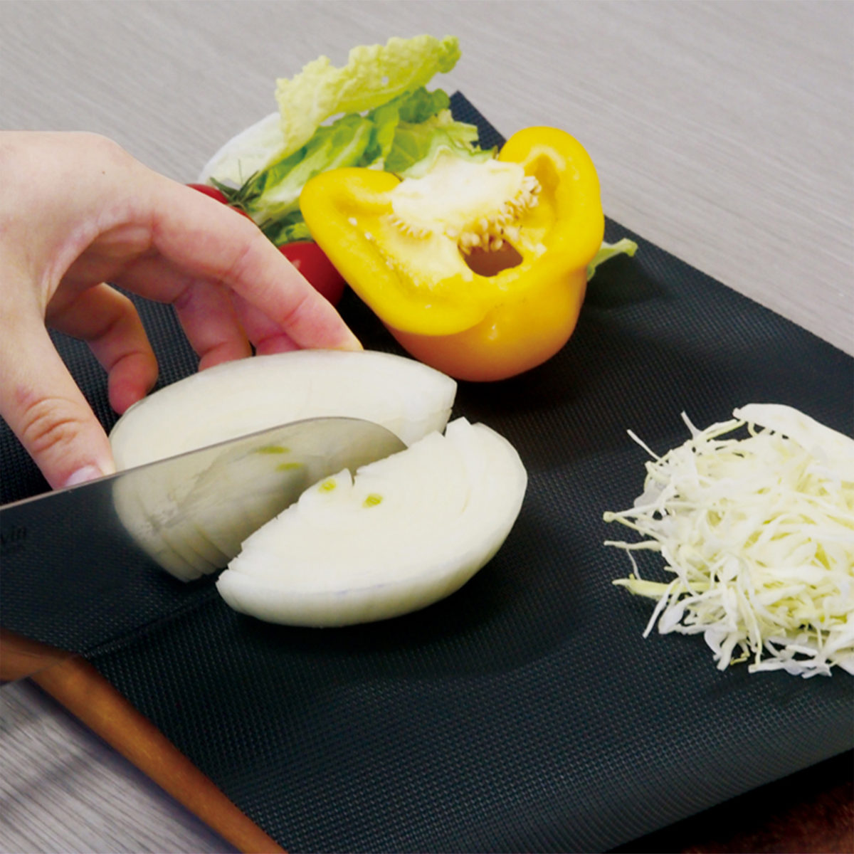 薄くて曲がる素材なので、切った食材を鍋やボウルなどへこぼさず移すことができます。ケーキやピザの切り分けなどにも便利です。