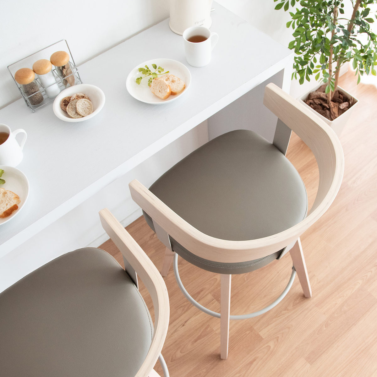 バーチェアの座面高は67cmで、一般的なカウンター(95cm前後)に合わせた丁度良い設計です。天然木の美しい木目がカフェのようにおしゃれな空間を演出してくれます。