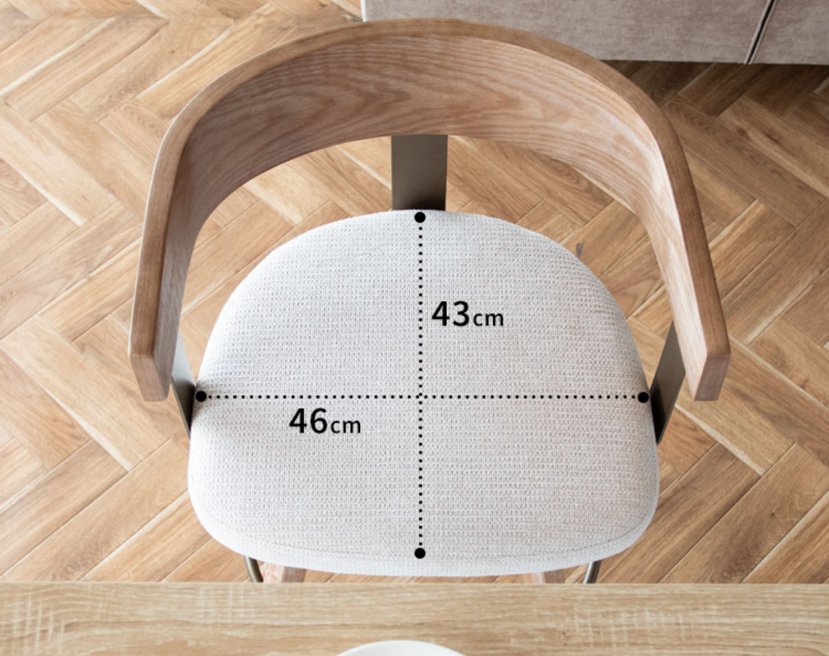 座面は、身体の大きい方でもゆったりお座りいただける幅46cm×奥行43cmの広々としたサイズです。