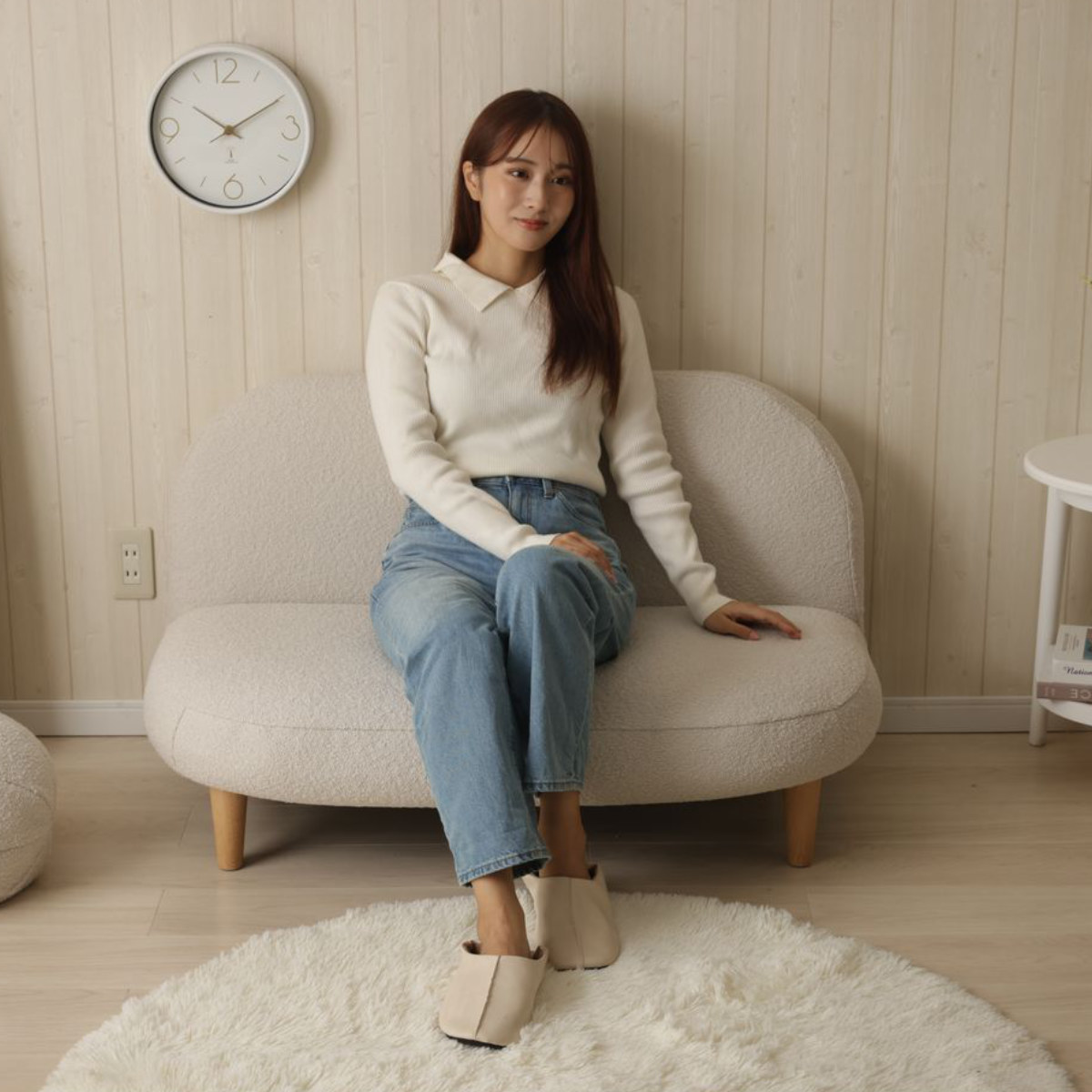 淡い色味で優しい風合いのもこもこソファ
