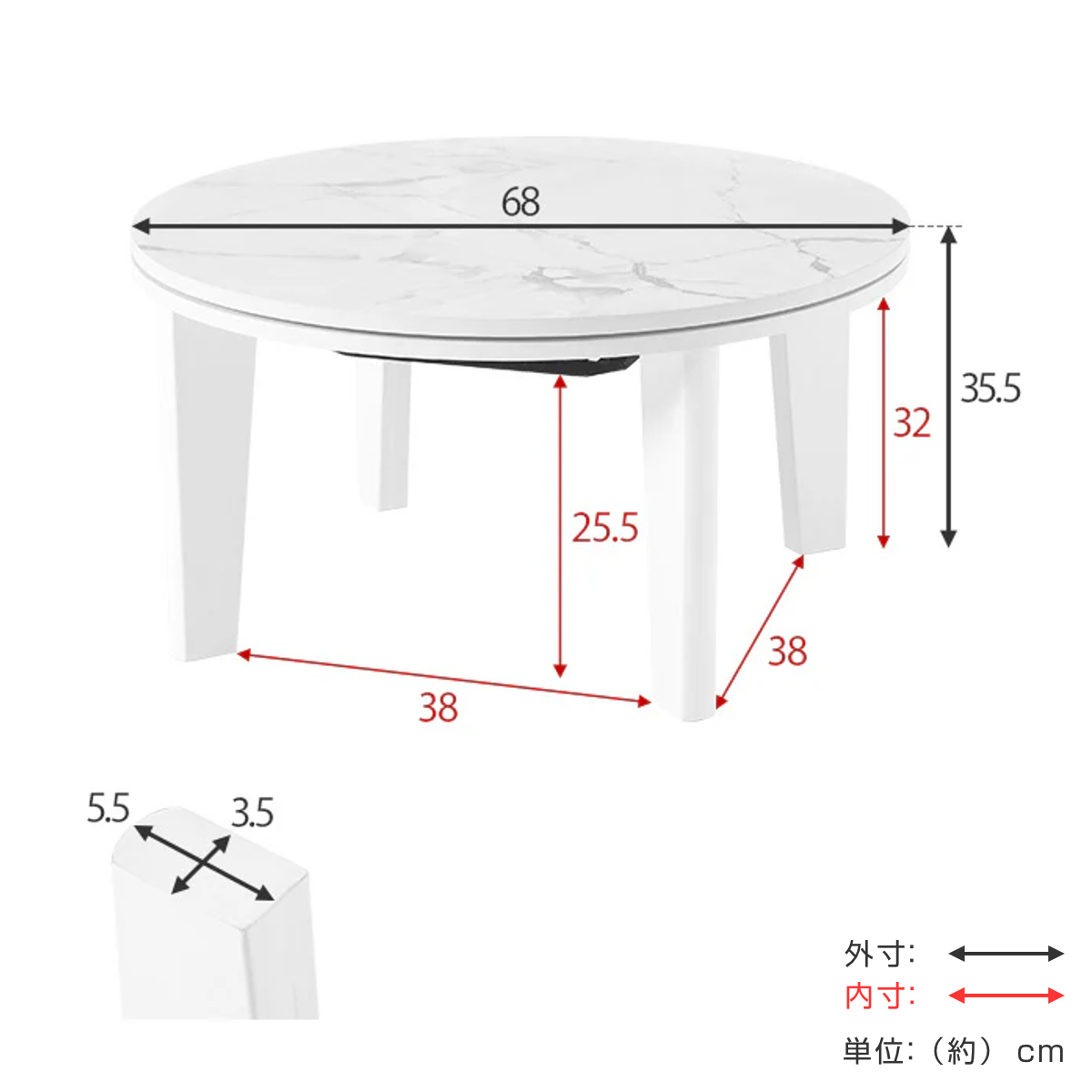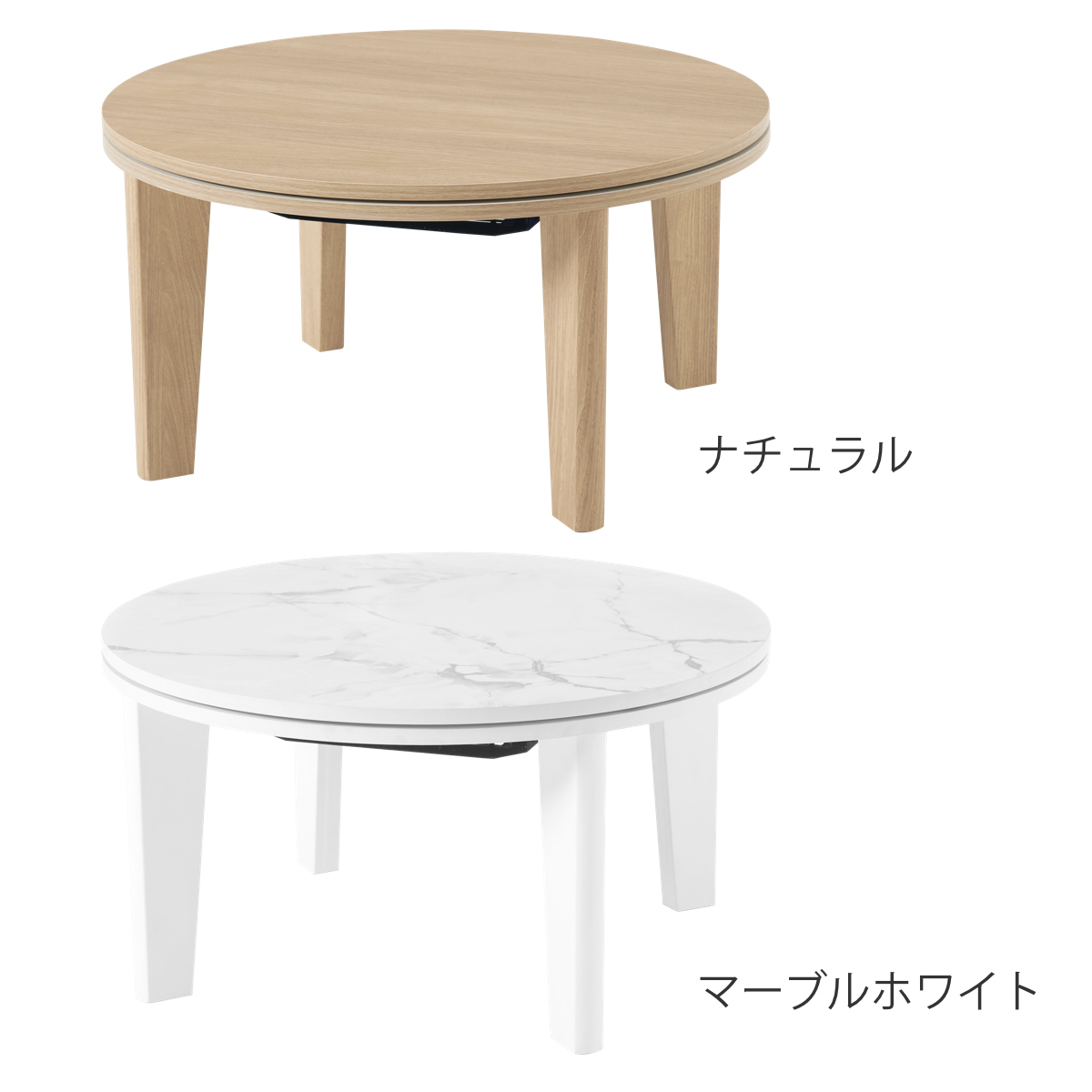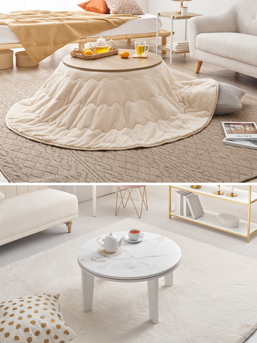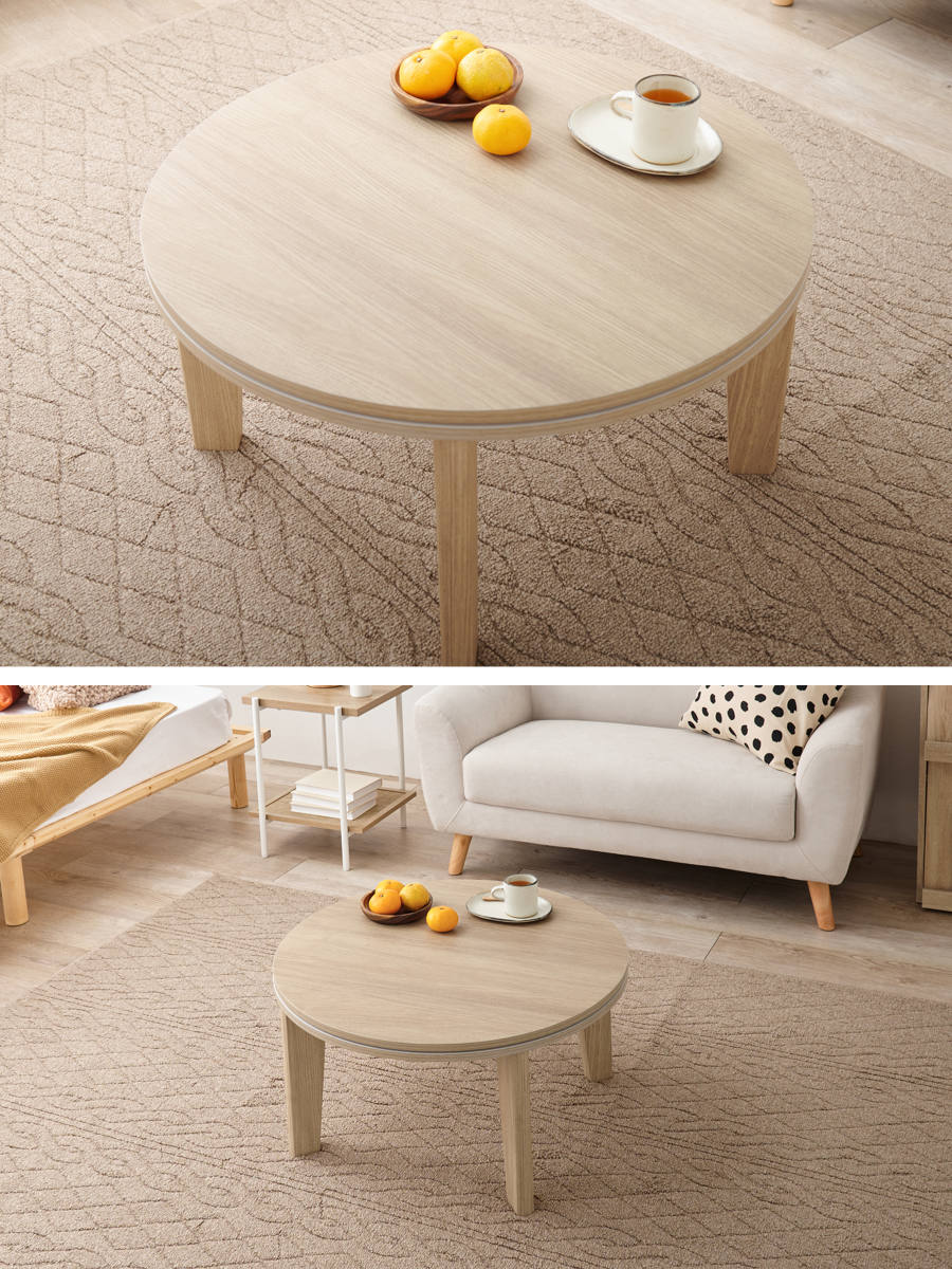 インテリアにやさしくなじむ円型のシンプルなデザイン。直径68cmのコンパクトサイズのこたつテーブルです。冬はこたつとして、オフシーズンにはセンターテーブルとして季節を問わずお使いいただけます。