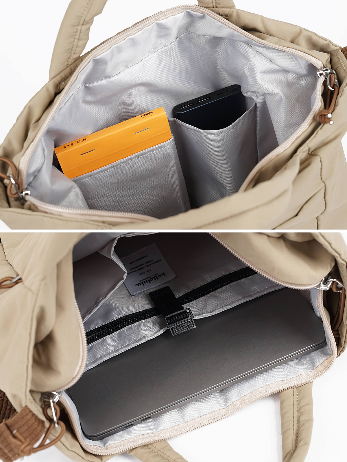 広々としたメイン収納は、大小のオープンポケット・ファスナーポケット・最大14インチのノートPCが入るポケットが付いた充実収納。PC収納ポケットにはバックル付きで、PCが飛び出すのを防ぎます。