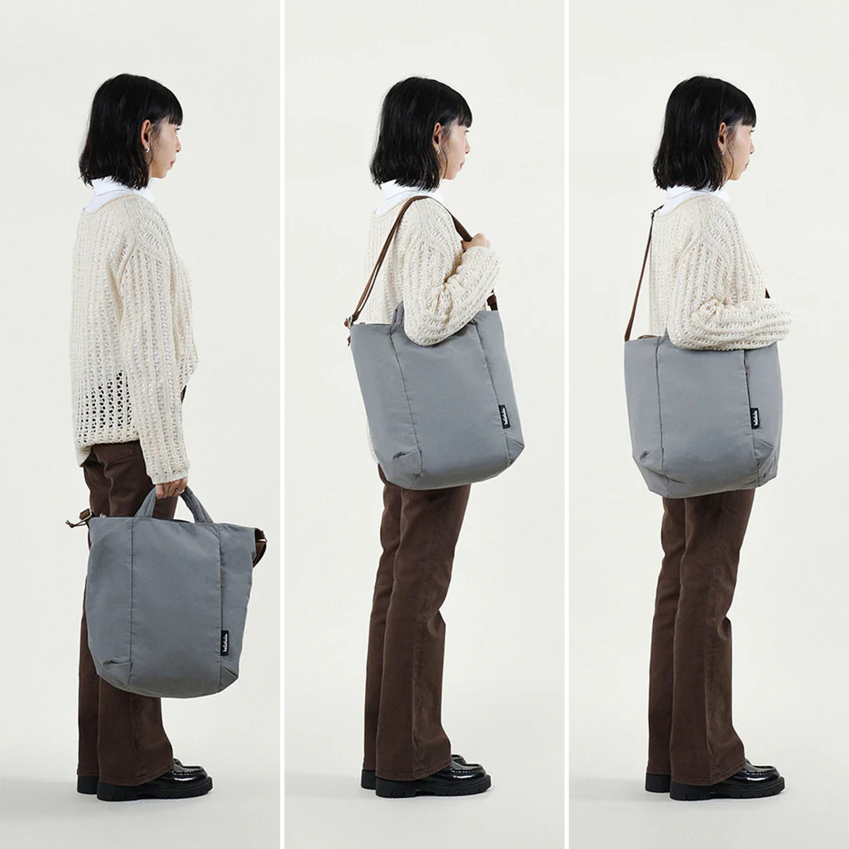 手持ち・肩掛け・斜め掛けの3way仕様のトートバッグです。持ち手と長さ調節が可能なショルダーストラップで、ファッションやシーンに合ったスタイルに変えられます。書類や水筒などが入れやすい縦型で、通勤・通学からデイリーまで幅広く使えます。