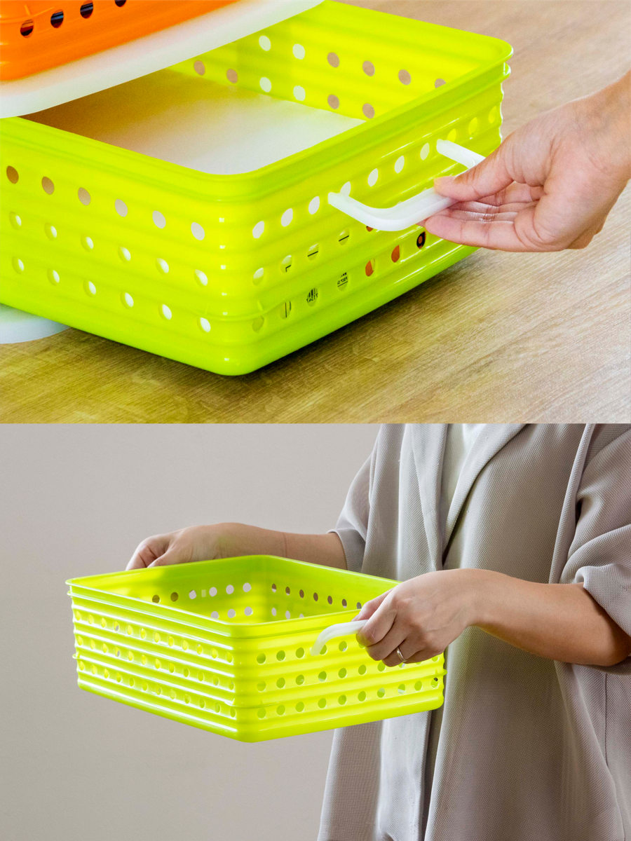 バスケットには取っ手が付いていて、引き出しやすく持ち運びやすい仕様です。バスケットを抜き出して、違うお部屋へ持ち運んで使うこともできます。