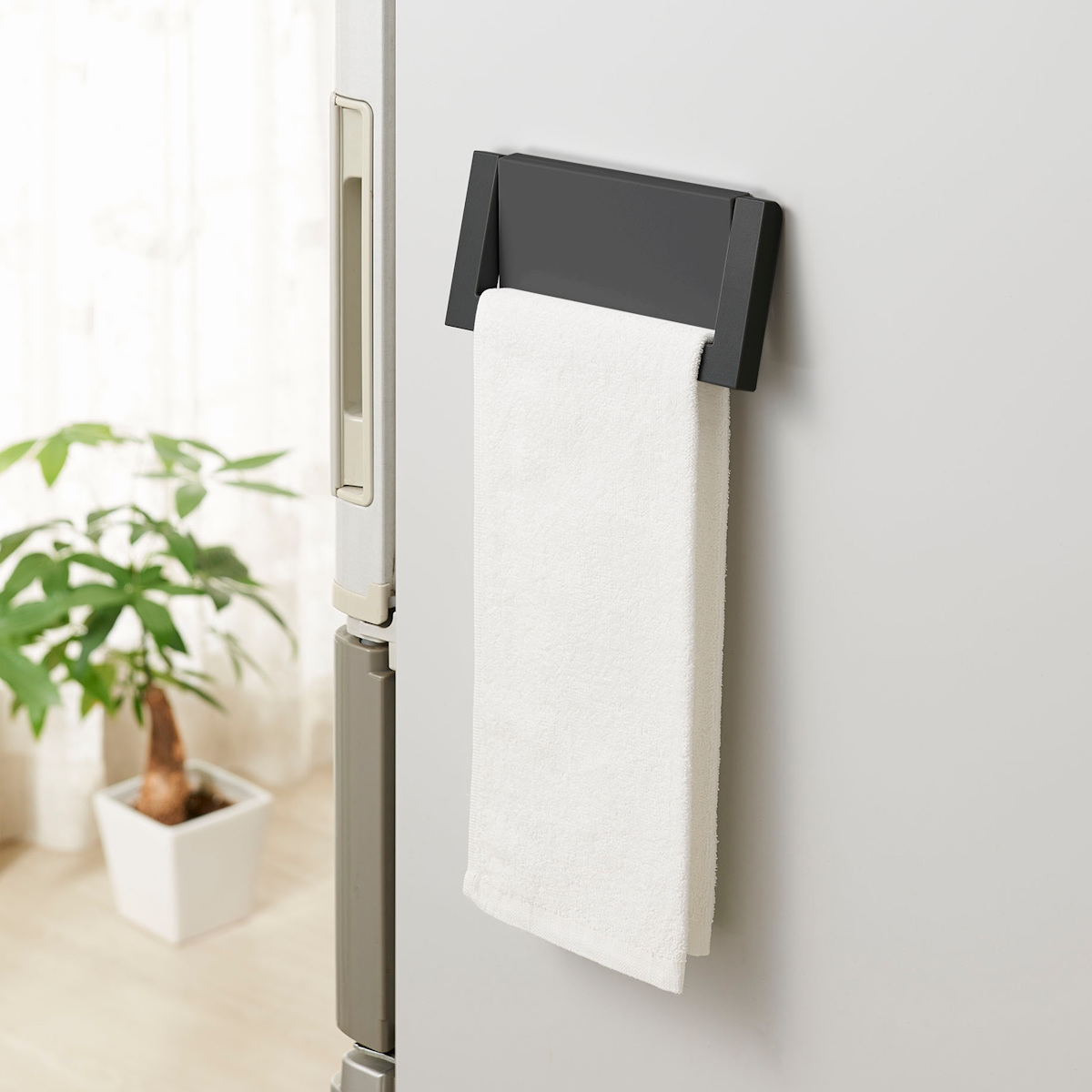 ●フラットに収納できる、マグネットでくっつくタオル掛けです。