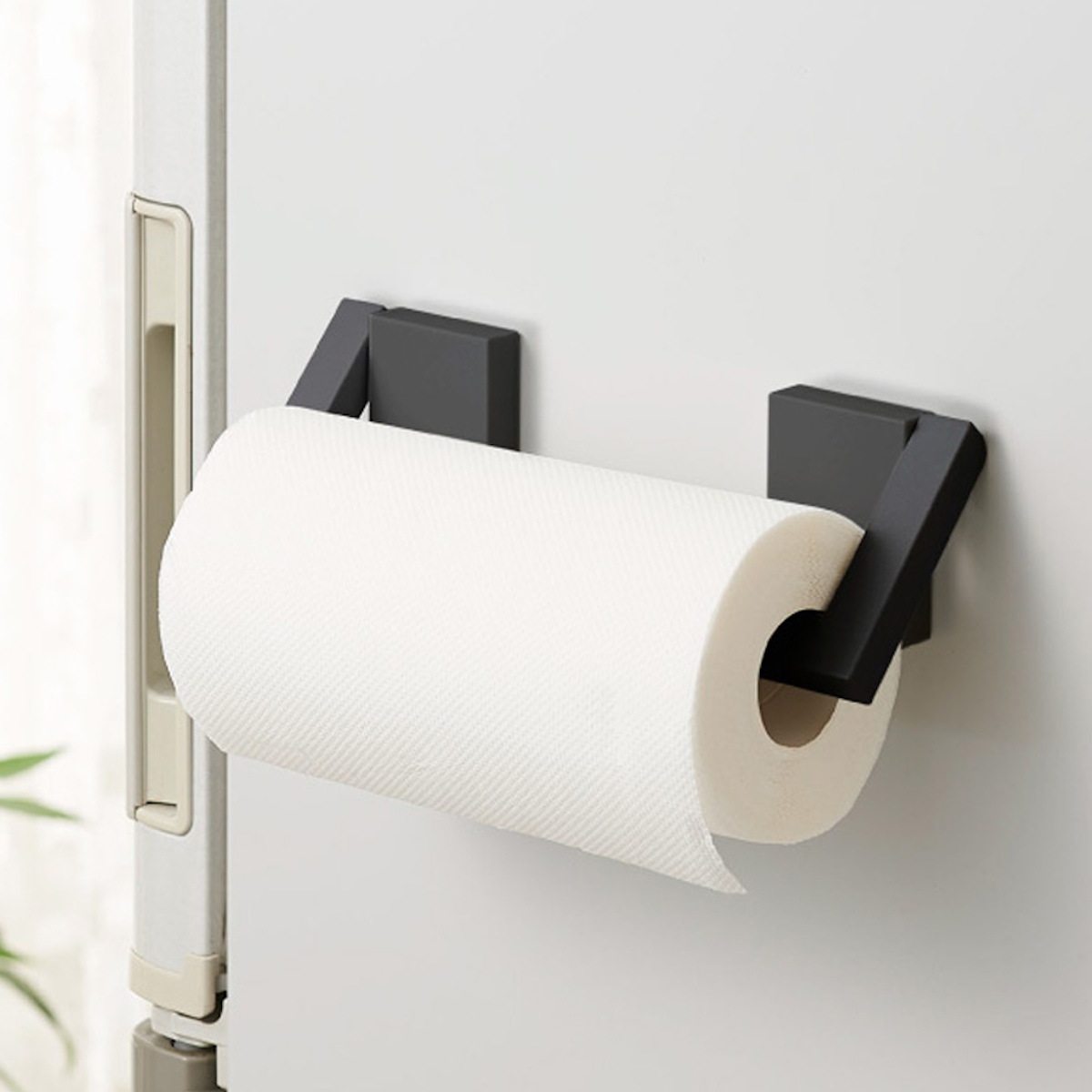 マグネットで簡単設置、フラットになるキッチンペーパーホルダー