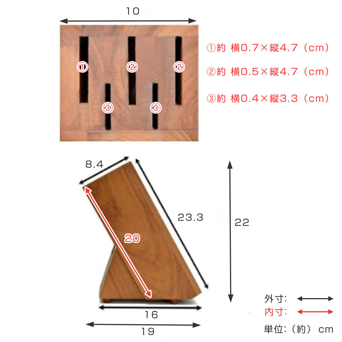 傷つきにくい天然木のアカシアを使用したのナイフスタンドです。5本のナイフを収納できます。アカシアは水気に強く、カビや腐敗に強い傾向があります。深みのあるブラウンの色合いは、キッチンに置くだけで高級感を演出できます。