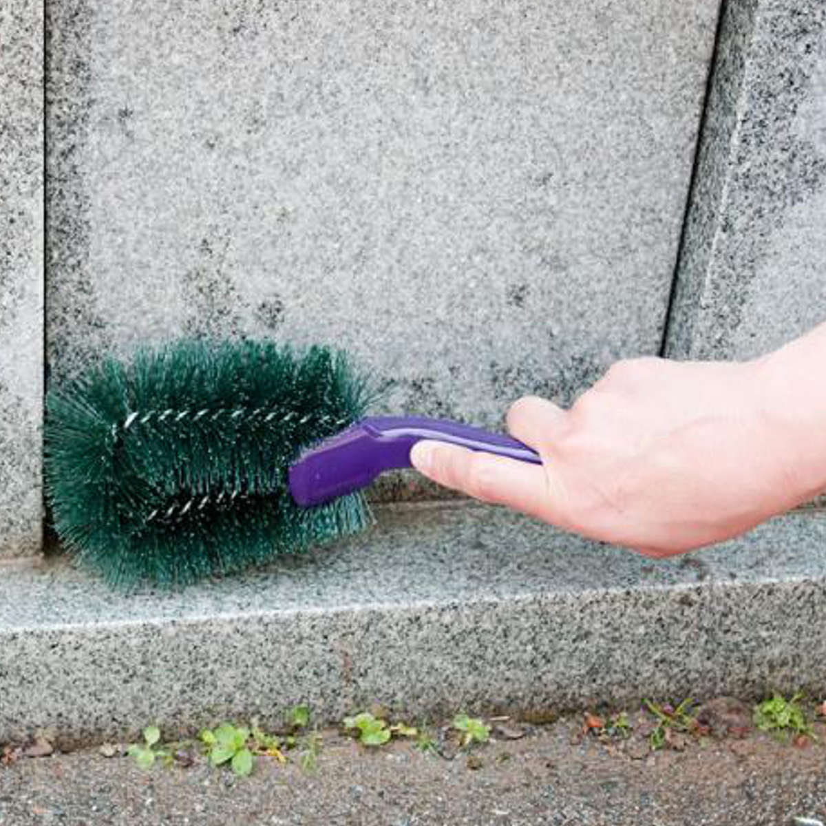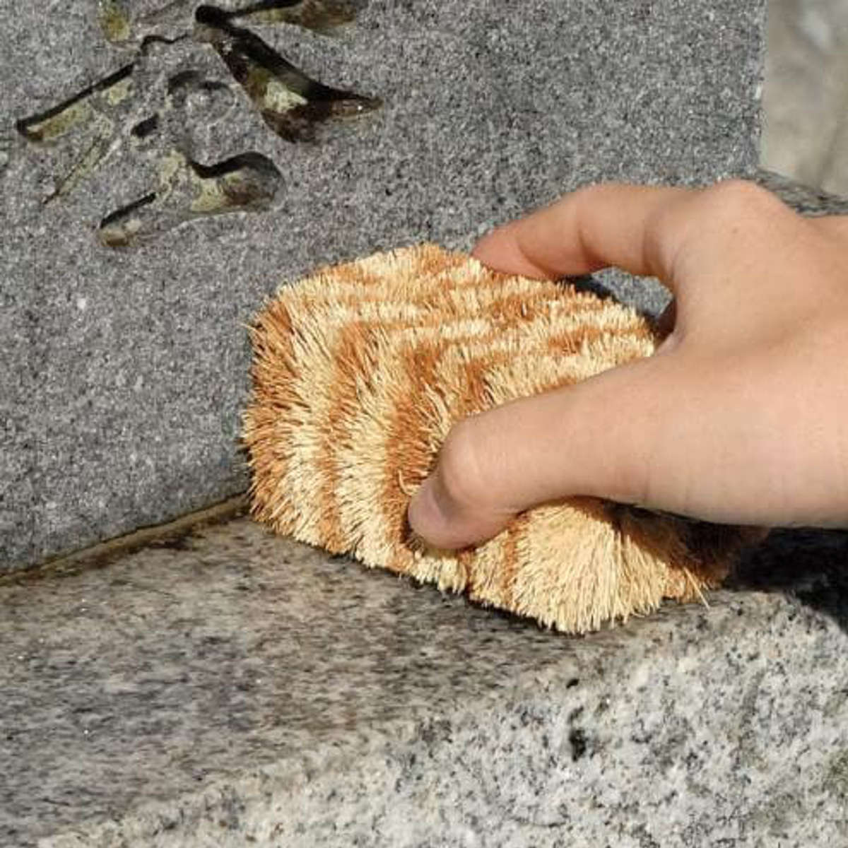 角型なので、墓石の角などの洗いにくい部分にもフィットし、これまで届かなかった場所にも入り込めます。さらに、広い面も効率よく洗え、短時間で手軽に掃除できます。