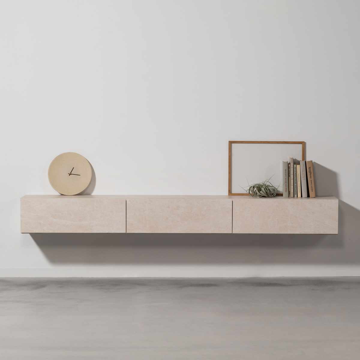 ホテルの一室のような空間を演出するフロートタイプのテレビ台です。 浮かせて設置することで圧迫感を与えず、部屋全体を広く見せてくれます。