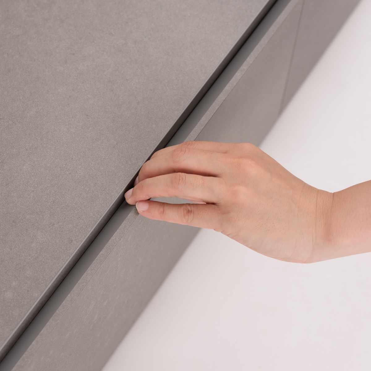 あえて取っ手は付けず、指を掛けて開閉する仕様に。取っ手が無いことによって、より高級感を放ちます。