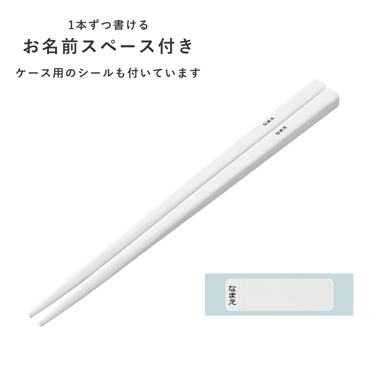 お箸の裏には名前を書き込めるスペース付きです。ケースにも名前が書けるシールが付いています。保育園や幼稚園でお友達と間違えたり、なくなる心配が減ります。