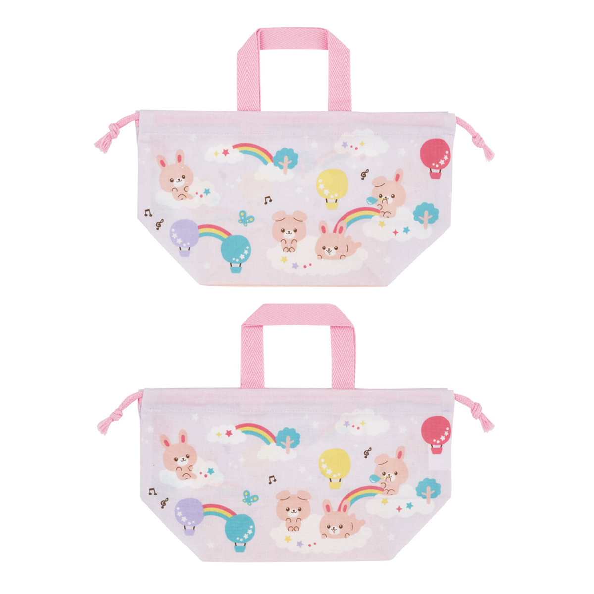 移動に便利な持ち手付きの巾着袋です。巾着タイプなのでお子さまも開け閉めしやすいです。