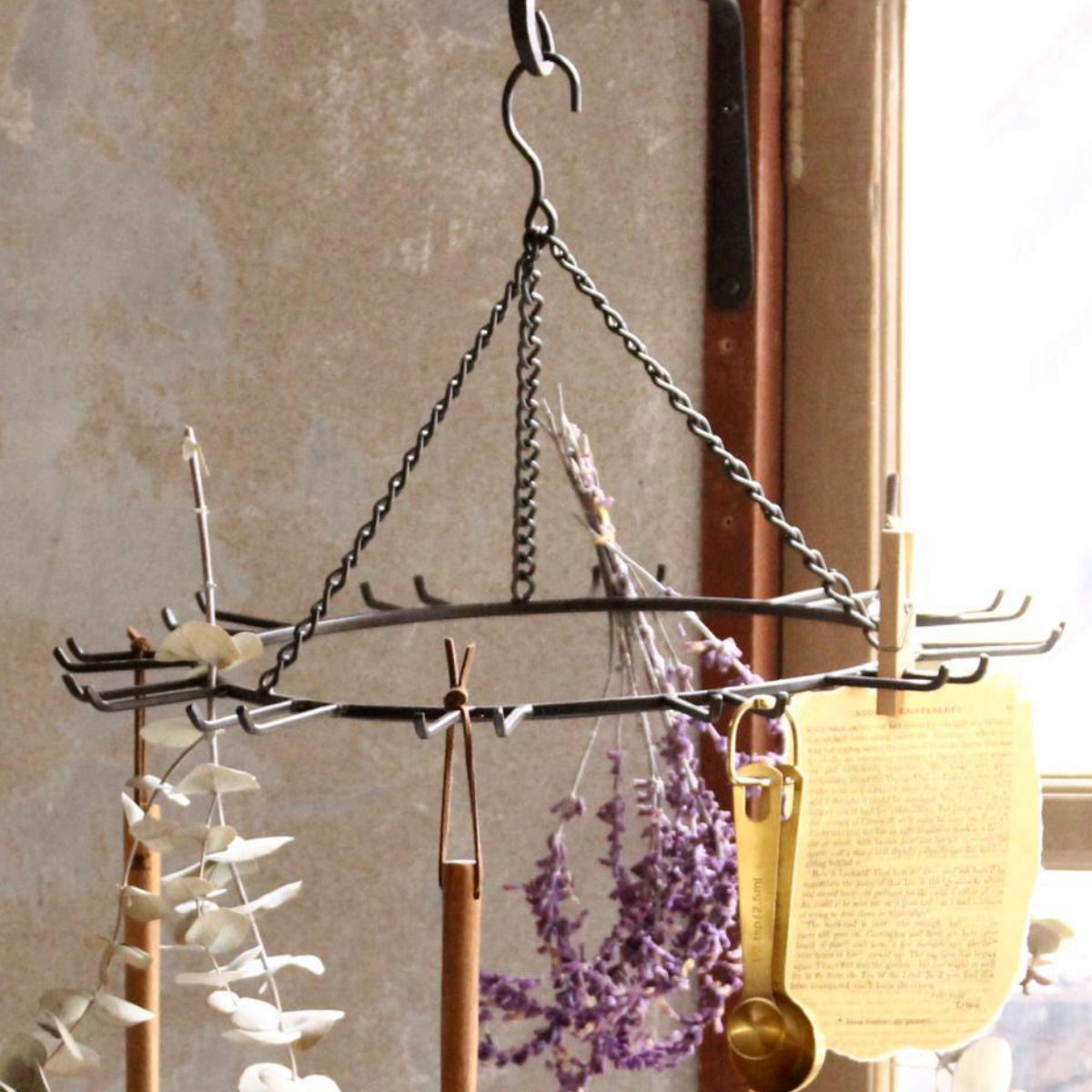 調理道具や鍵などを吊るして「見せる収納」としても活躍します。吊るすことでリビングやキッチンの空間を有効活用できます。
