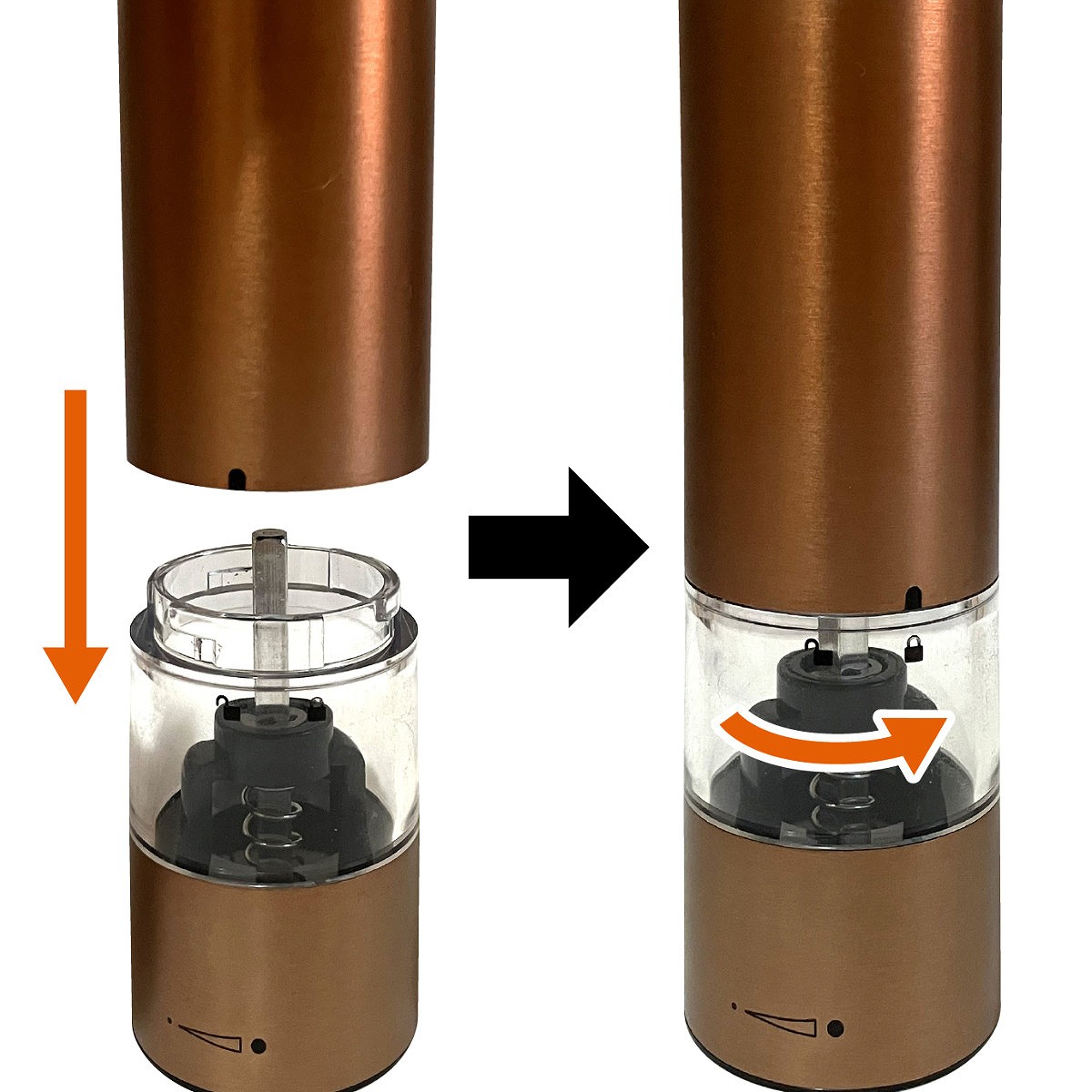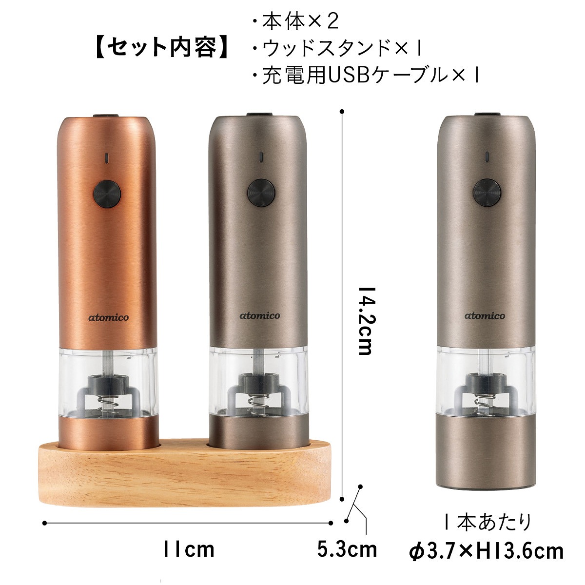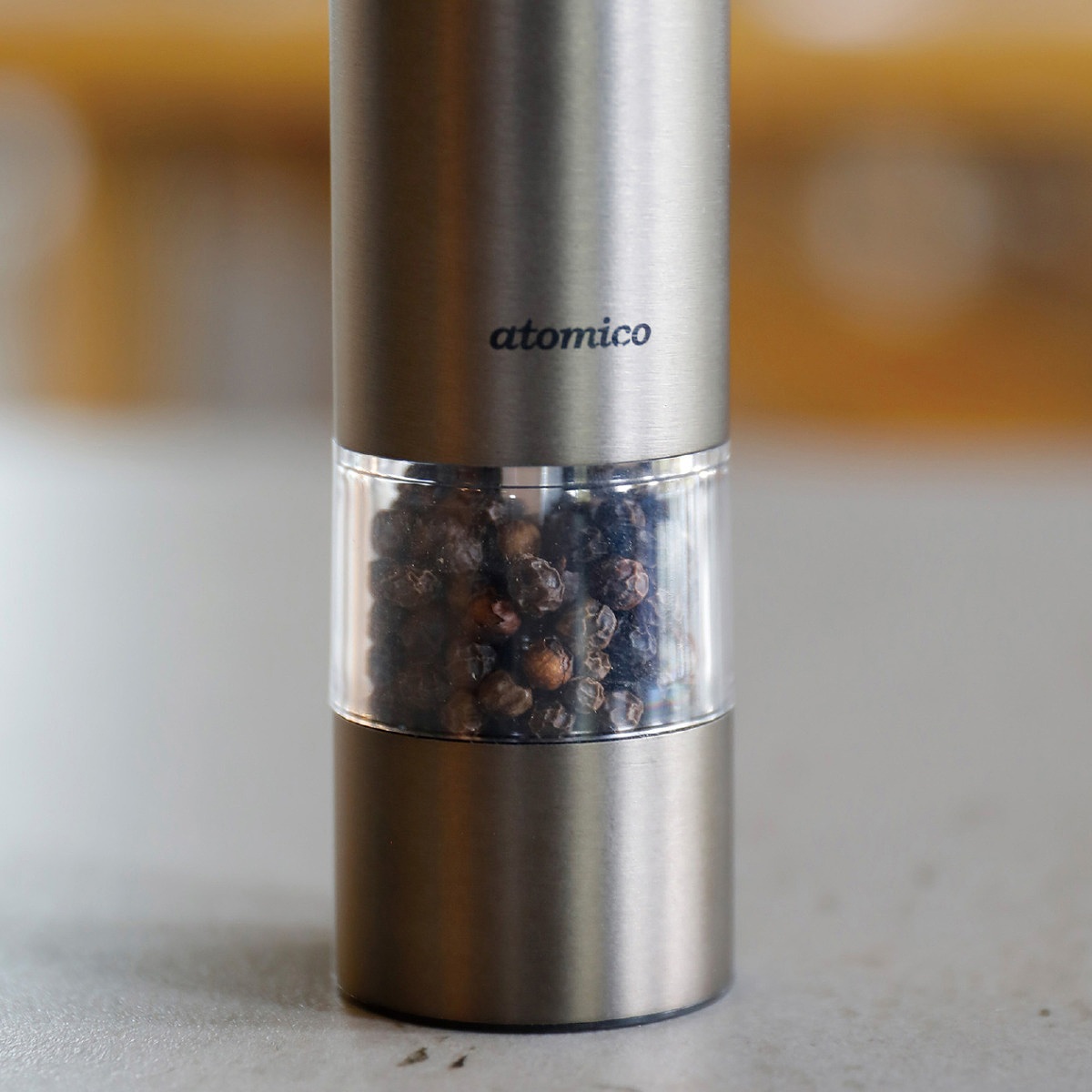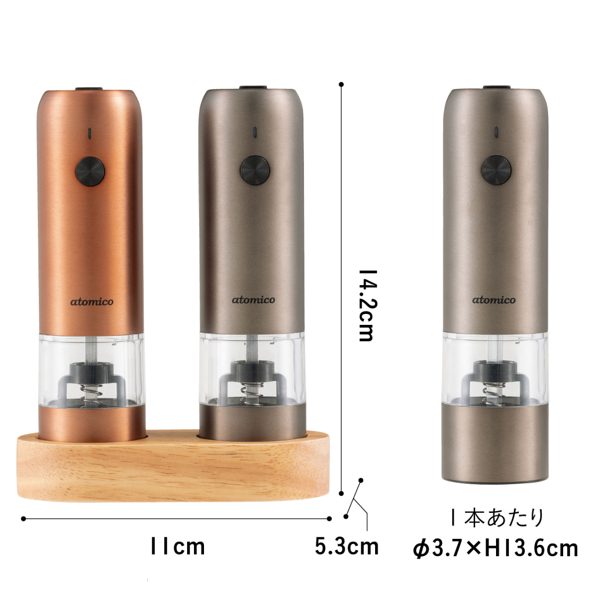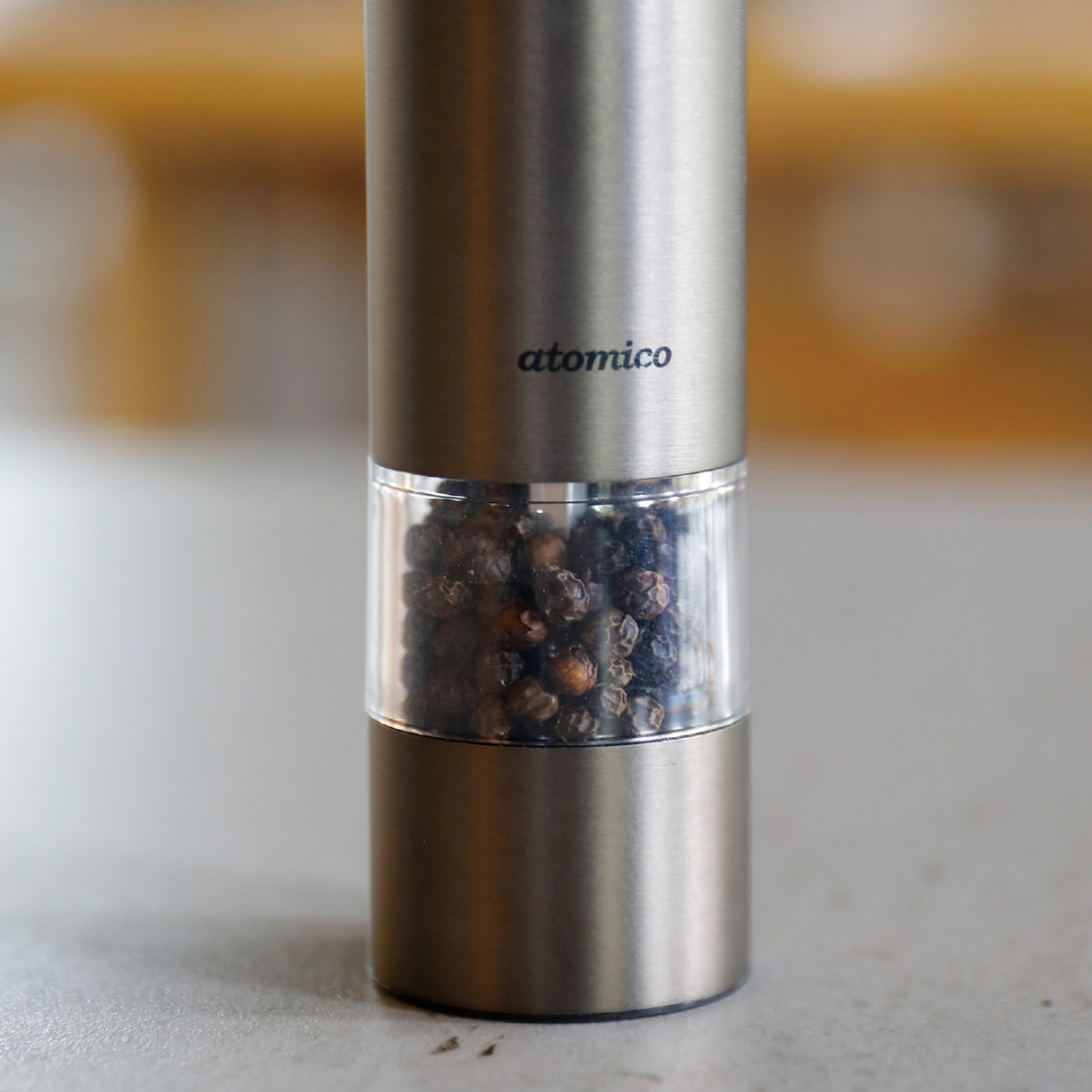●自動でスパイスが挽ける、ステンレス製の電動ソルト&ペッパーミルです。
