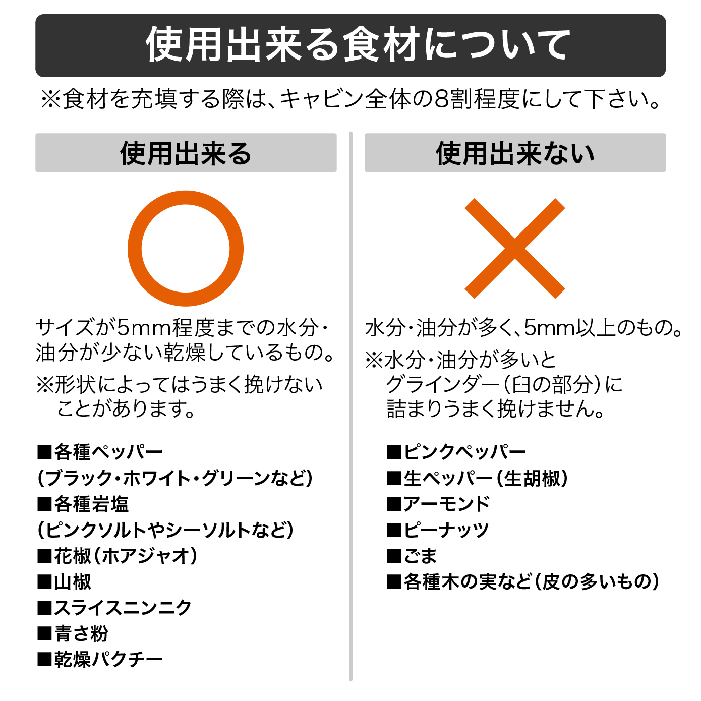 ●粒度の粗さ調節ができるので、お料理を引き立てる最適な粒度をチョイスできます。