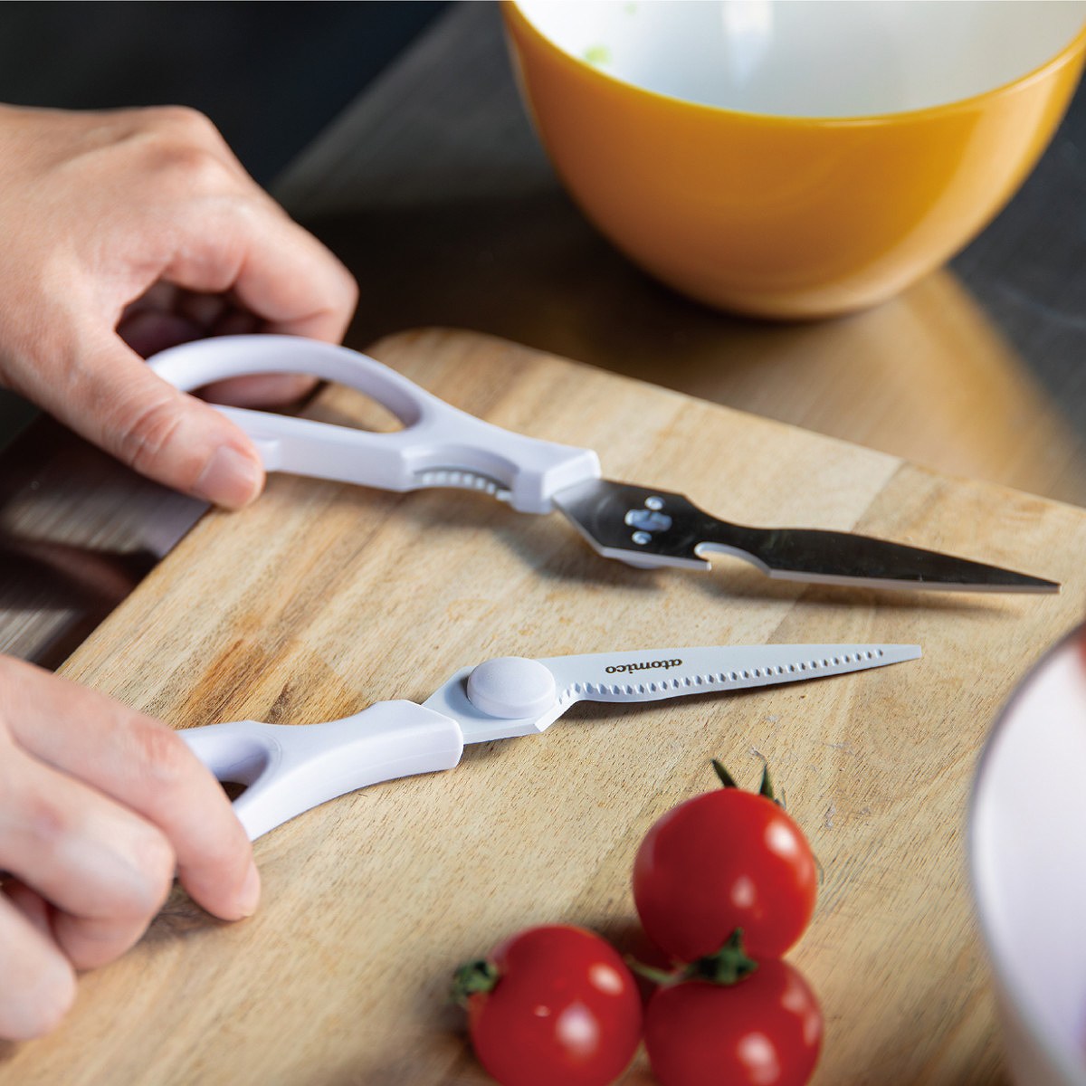 ふたつに分解できる構造にすることで、キッチンバサミの洗いにくさを解消。隅々まで洗浄・乾燥することができ、いつも清潔にお使いいただけます。