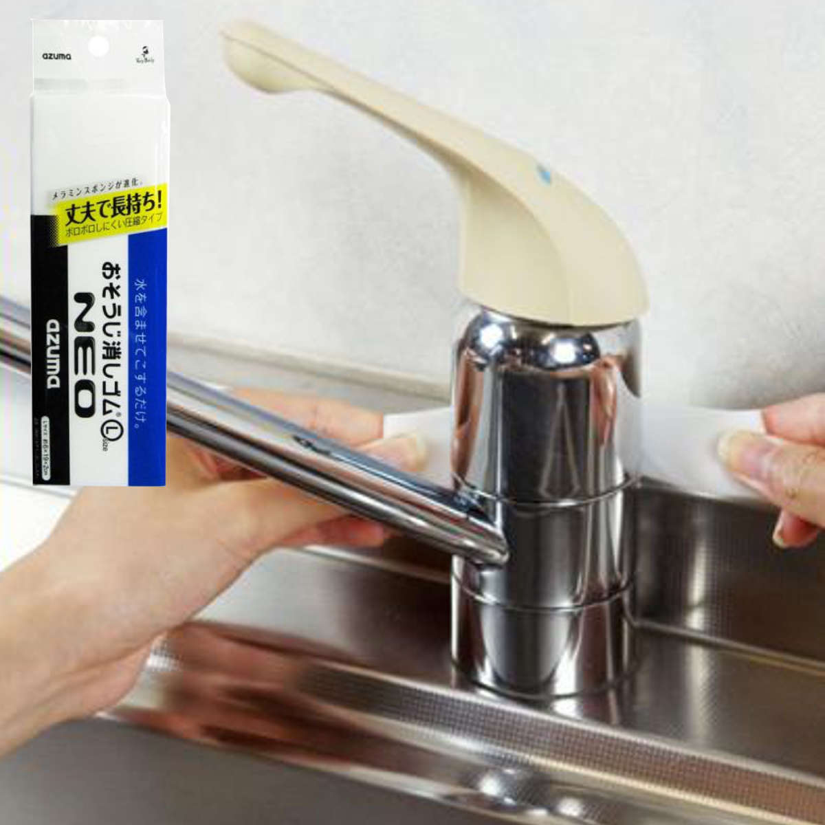 ステンレス、ガラス、鏡の水アカ、手アカ汚れなどを、水をつけてこするだけで、簡単に落とせるメラミンスポンジです。3~5ミクロンの極細繊維で、1本1本が枝分かれした樹脂の集合体によって、汚れをかき落とします。キッチンや洗面所、お風呂の気になる汚れをきれいにできます。