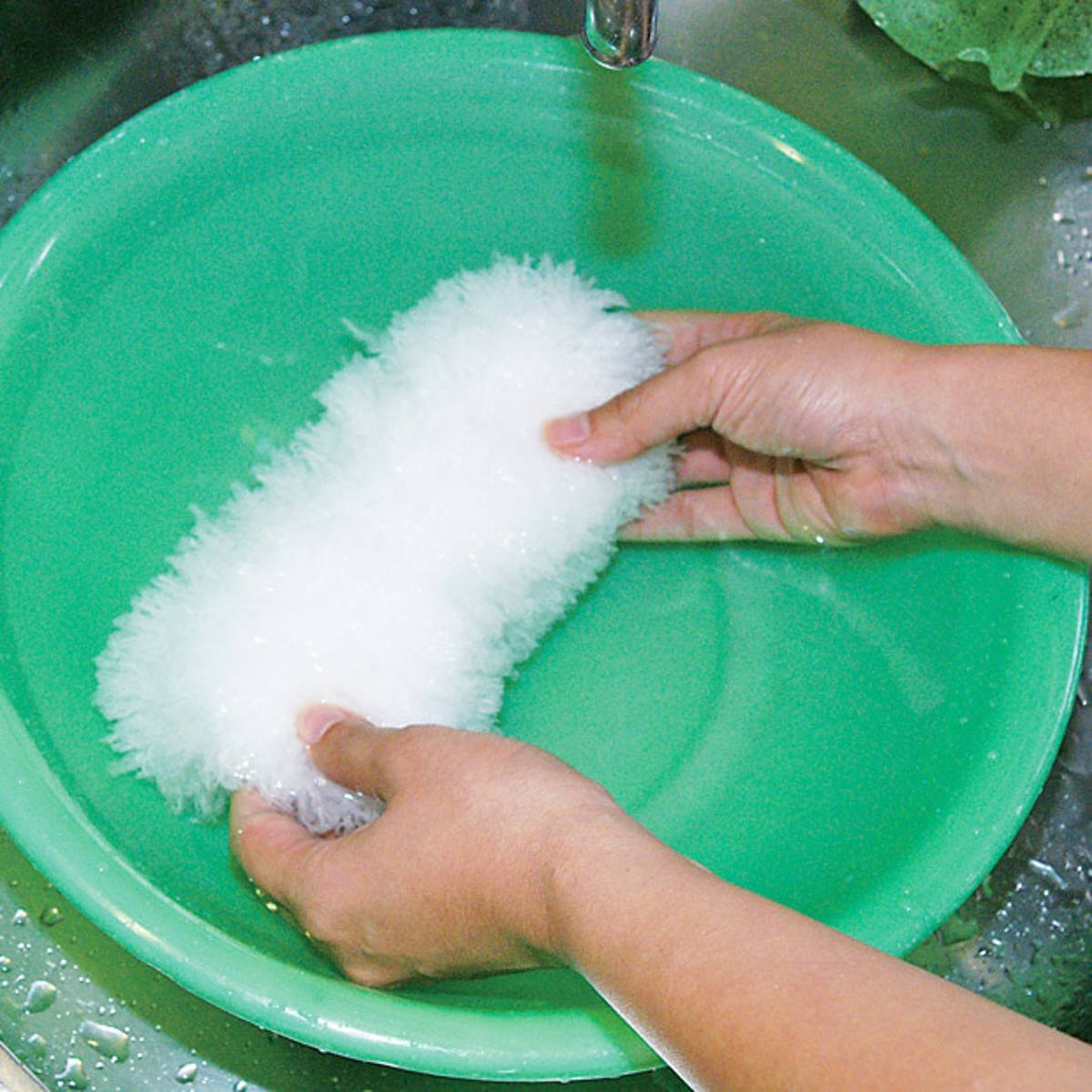 繊維1本1本が多角形構造になっているため、洗剤を使わず汚れをかき取ることができます。